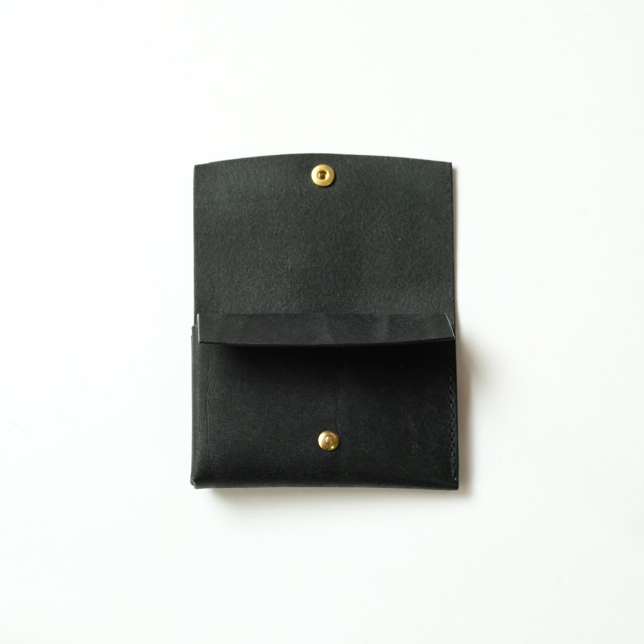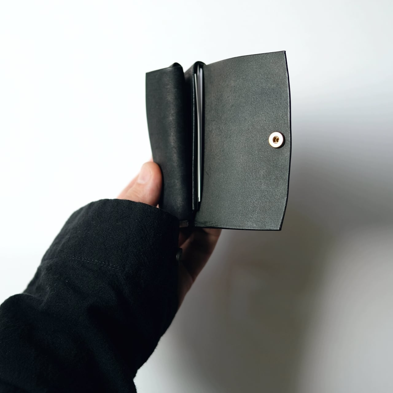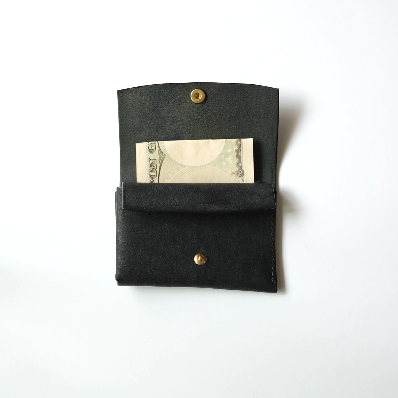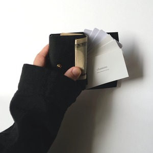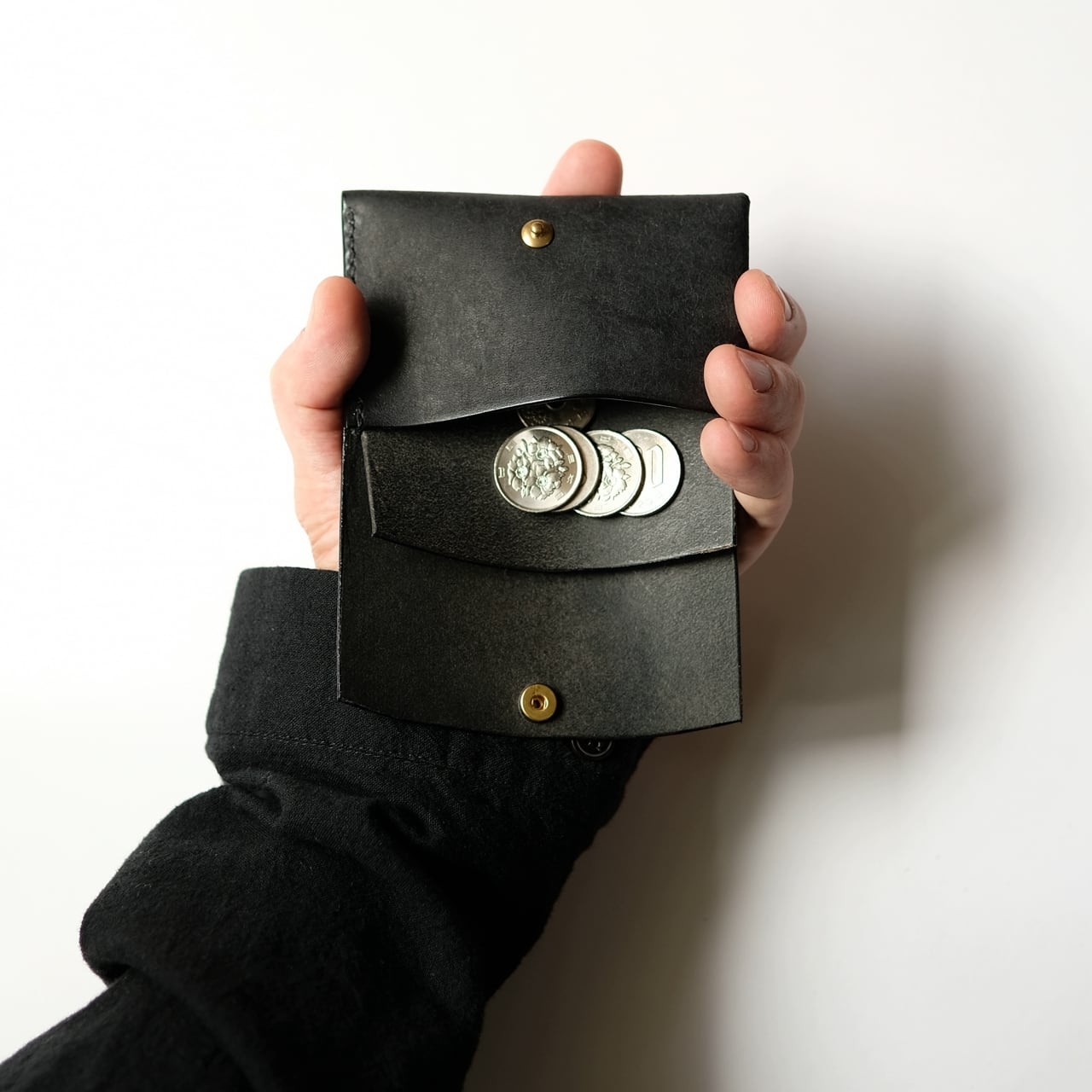 非常にシンプルで手のひらに収まるサイズの中に、小銭、カード、名刺、紙幣を収納できます。