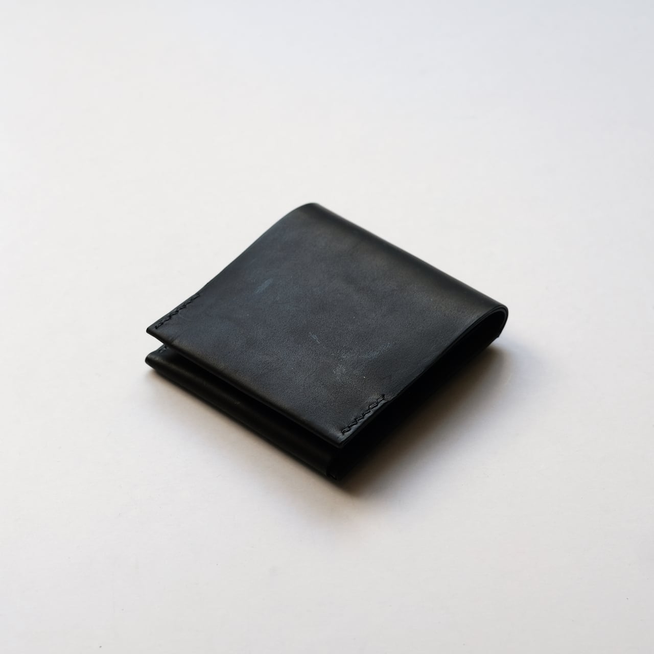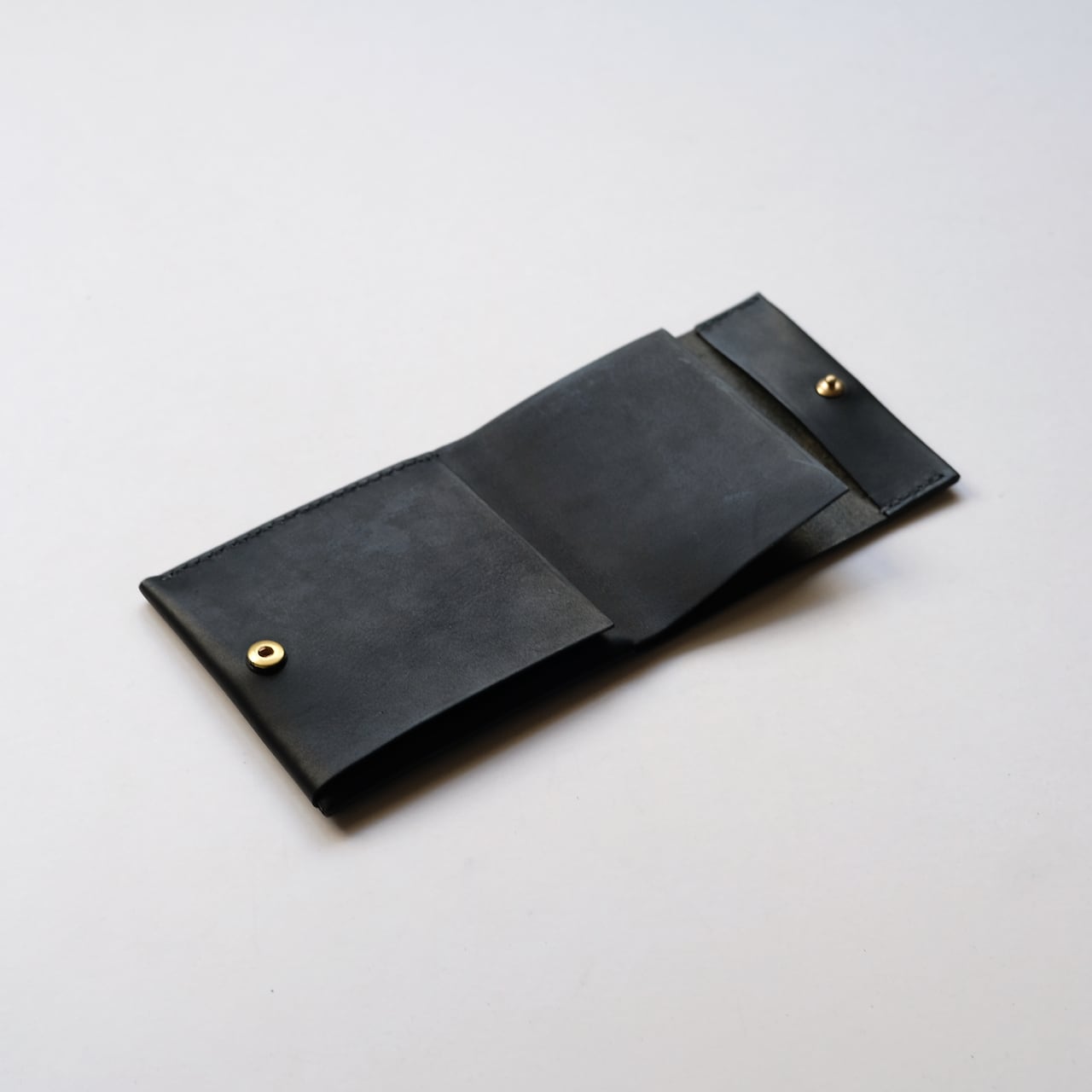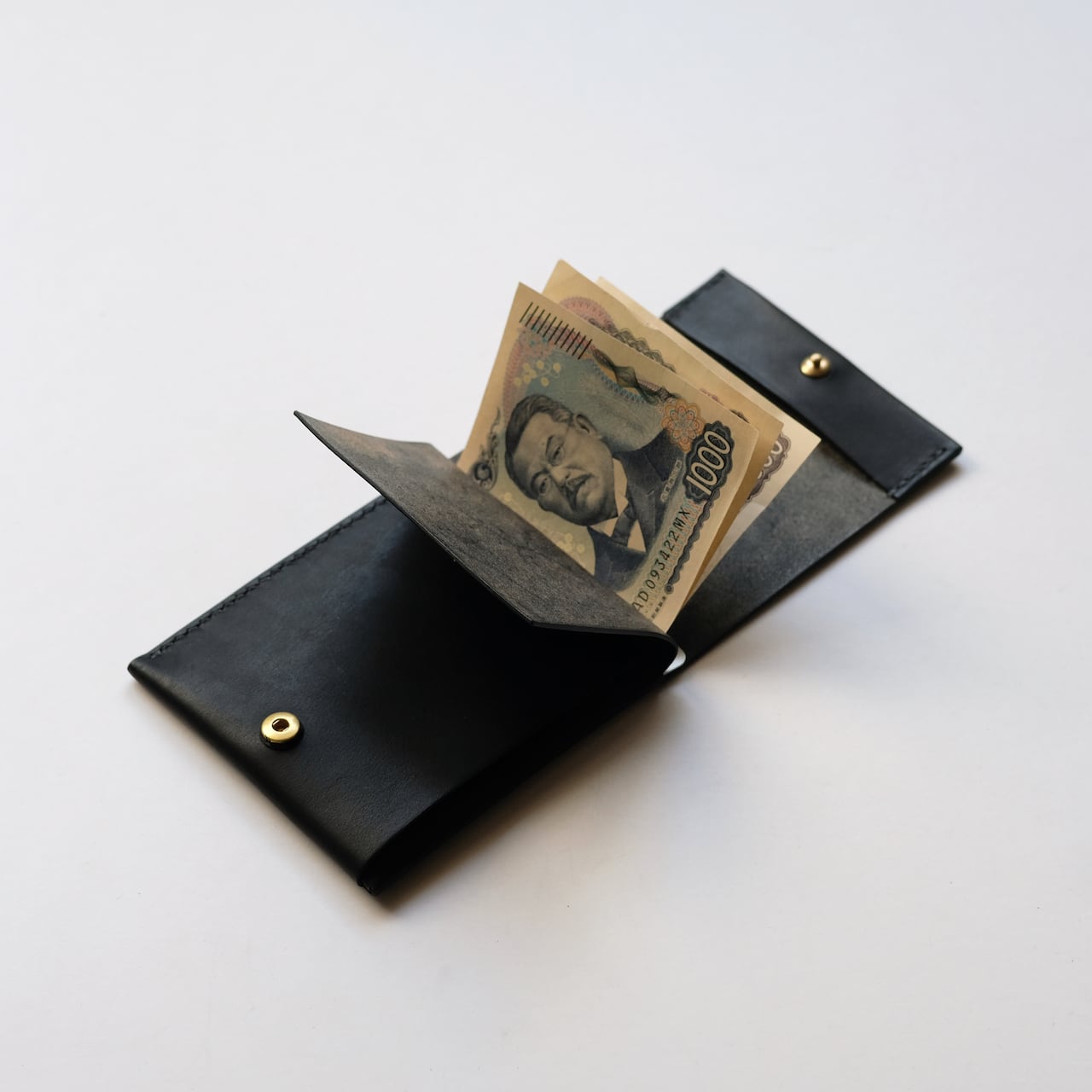 一枚の革を折り返し縫い上げた最小限を持ち歩く小さな財布。