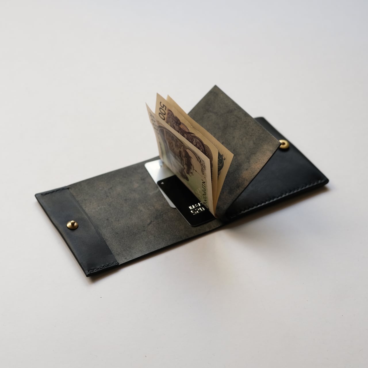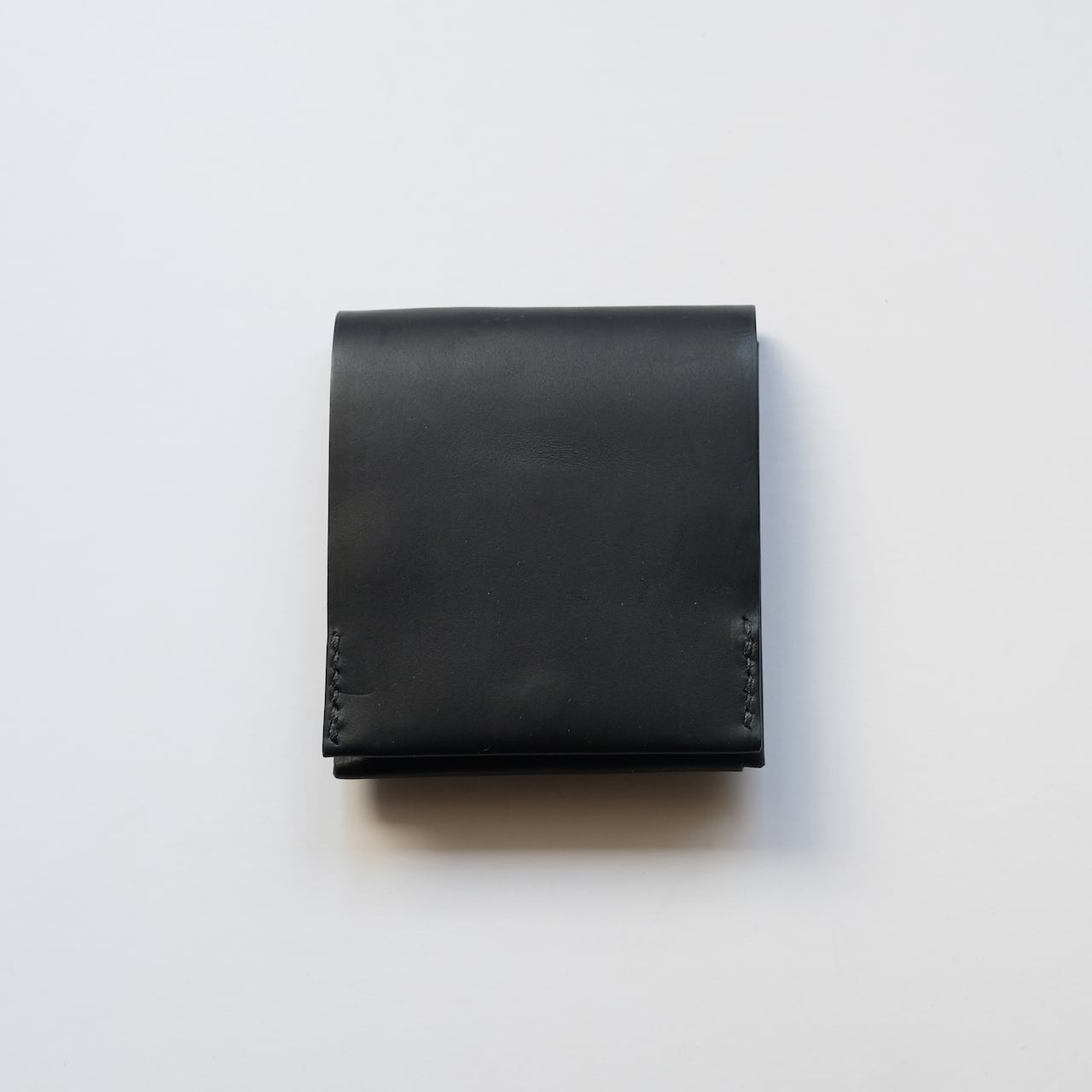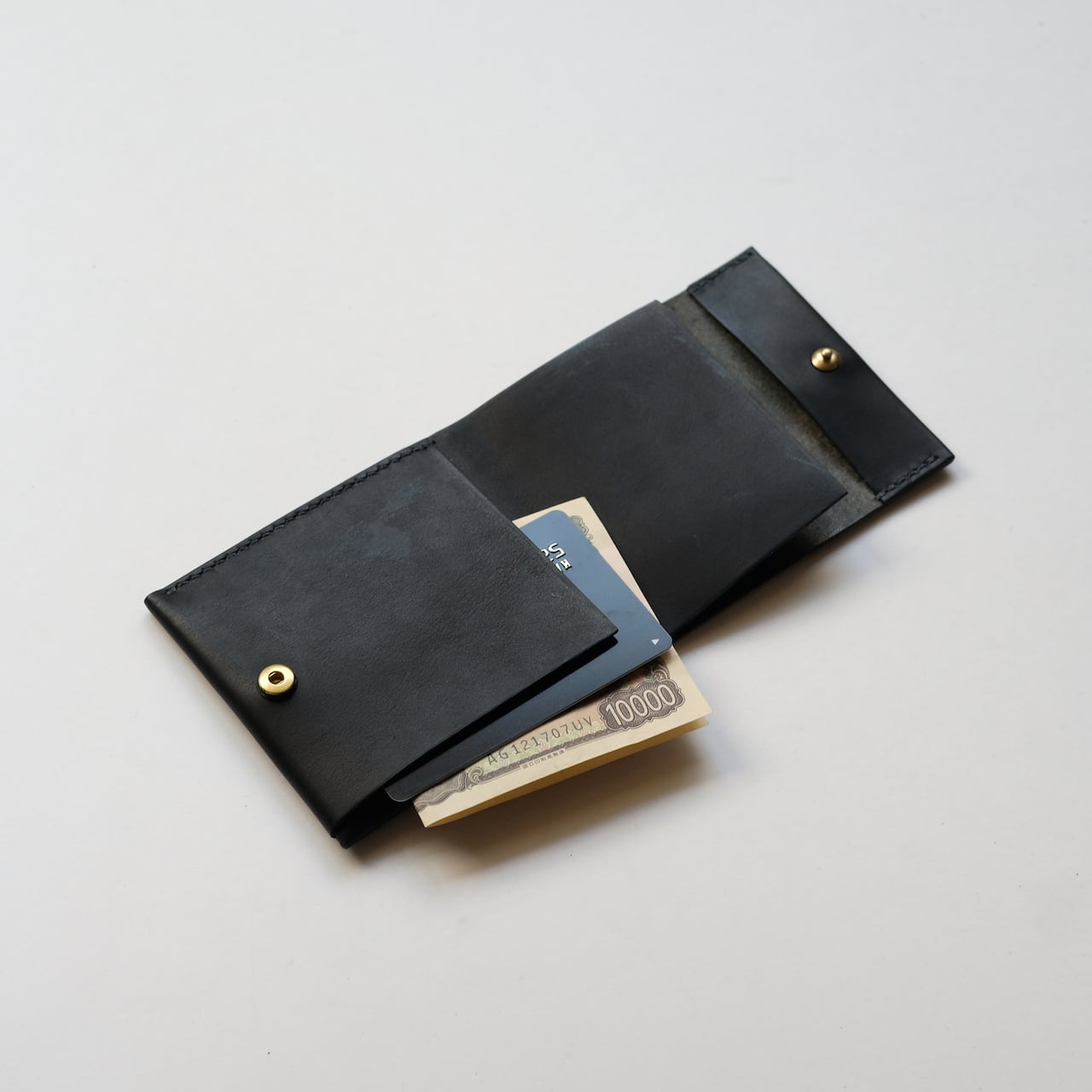 一枚の革を折り返し縫い上げた最小限を持ち歩く小さな財布。