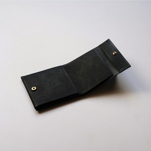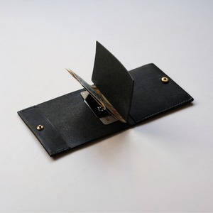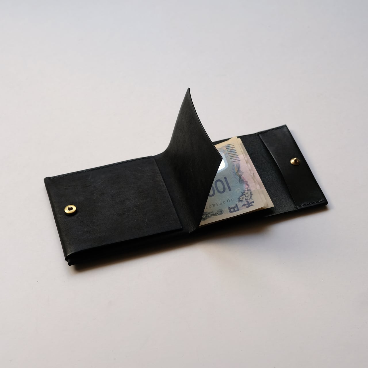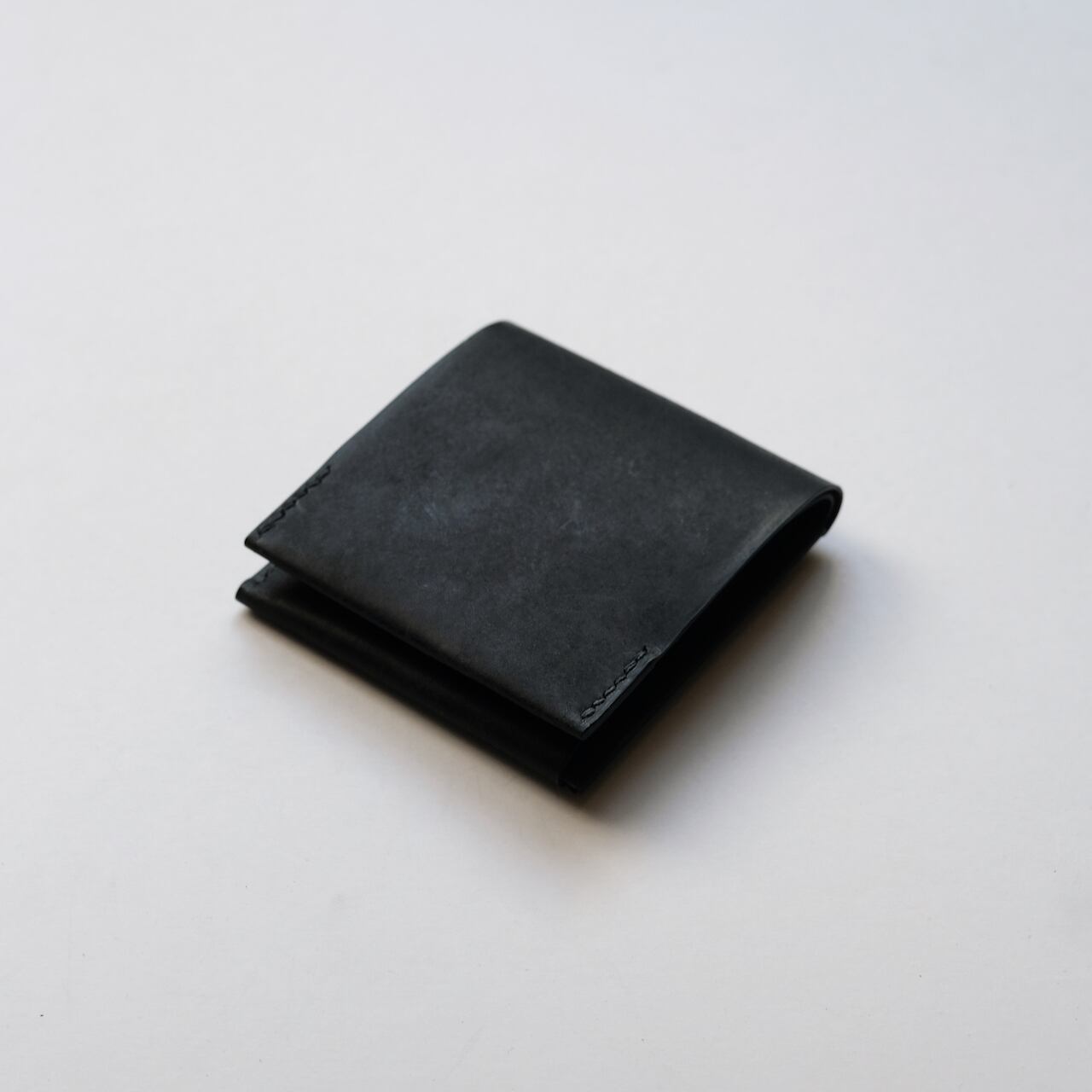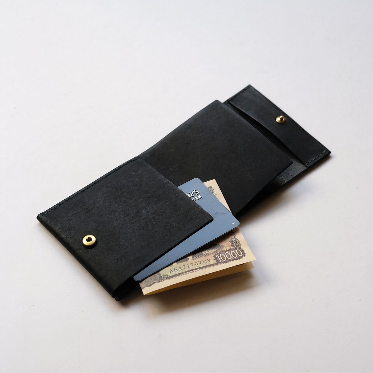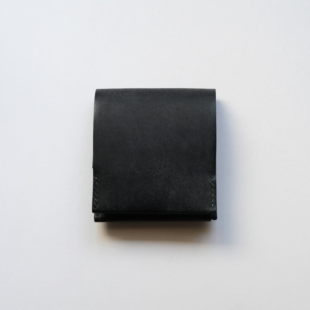 一枚の革を折り返し縫い上げた最小限を持ち歩く小さな財布。