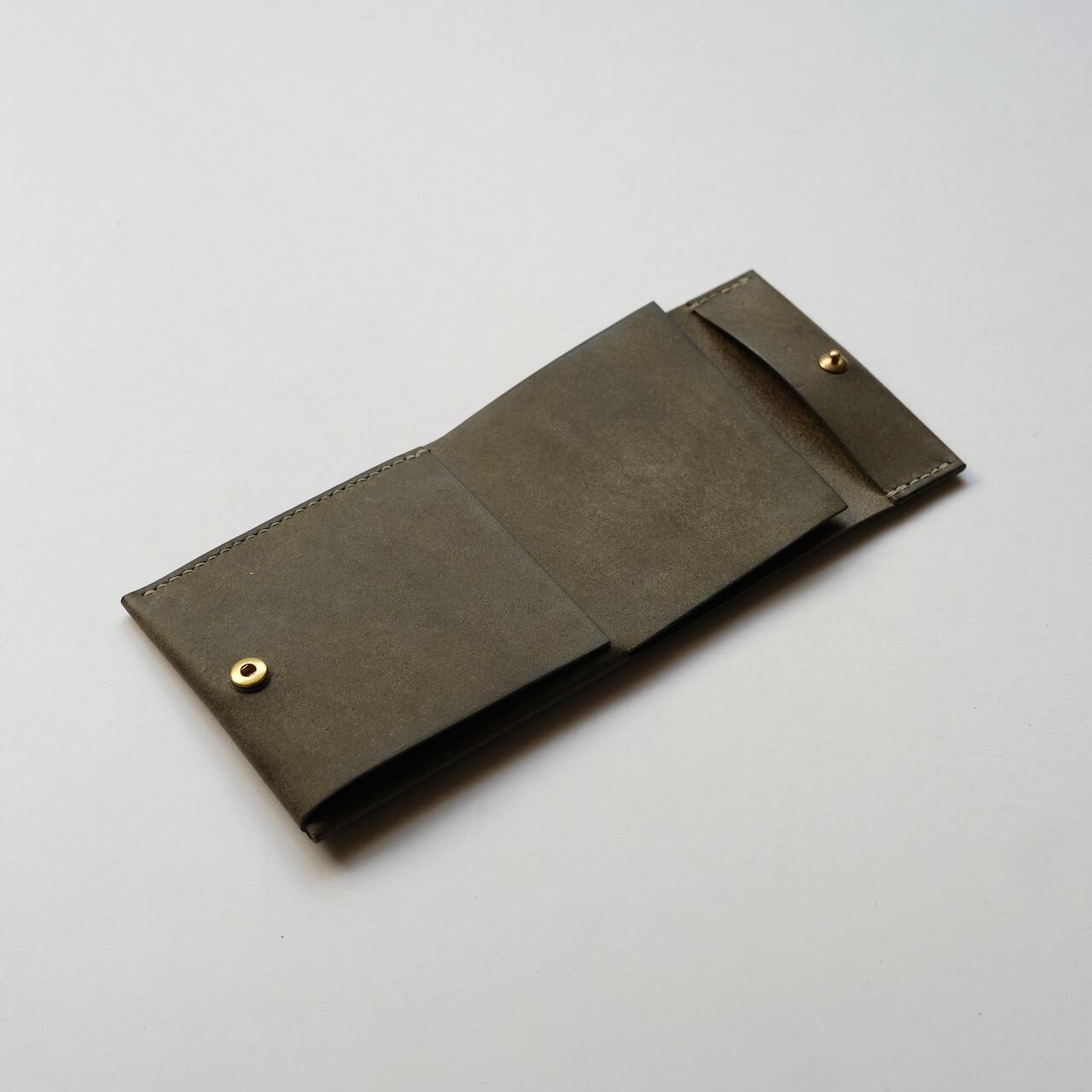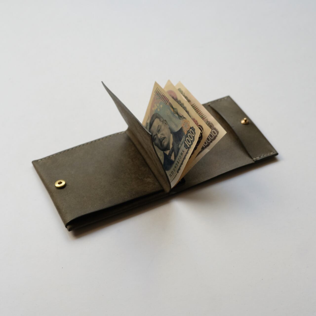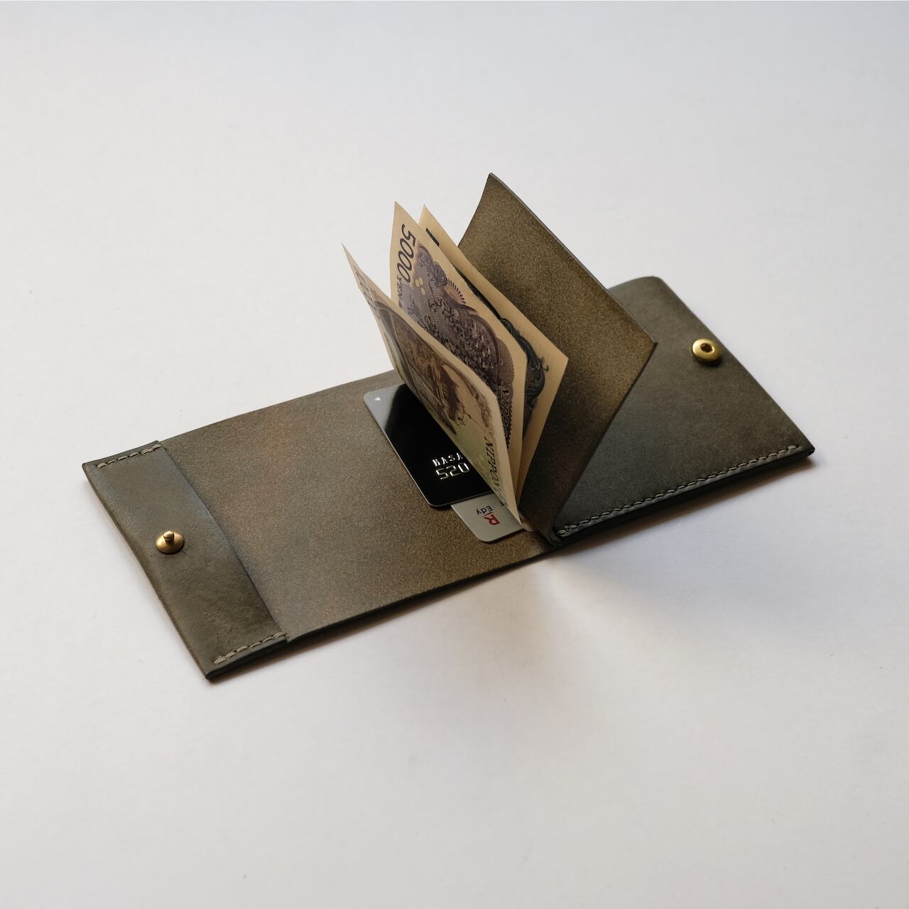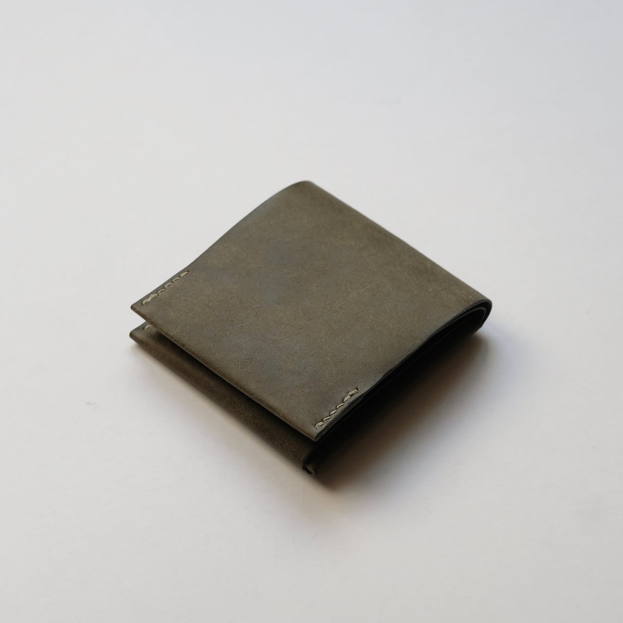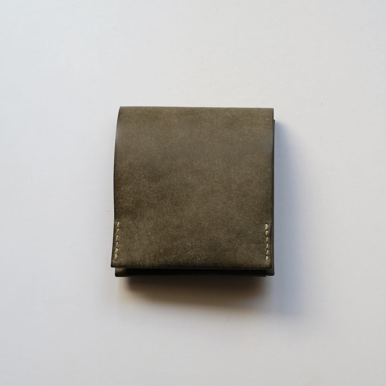 一枚の革を折り返し縫い上げた最小限を持ち歩く小さな財布。