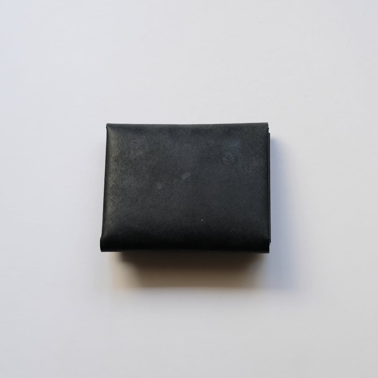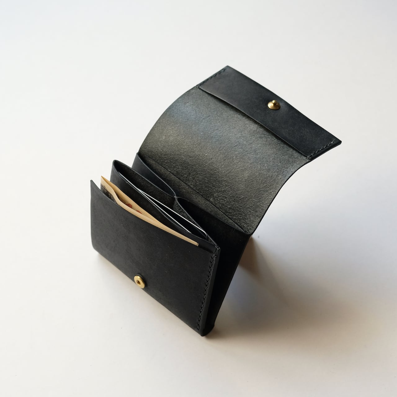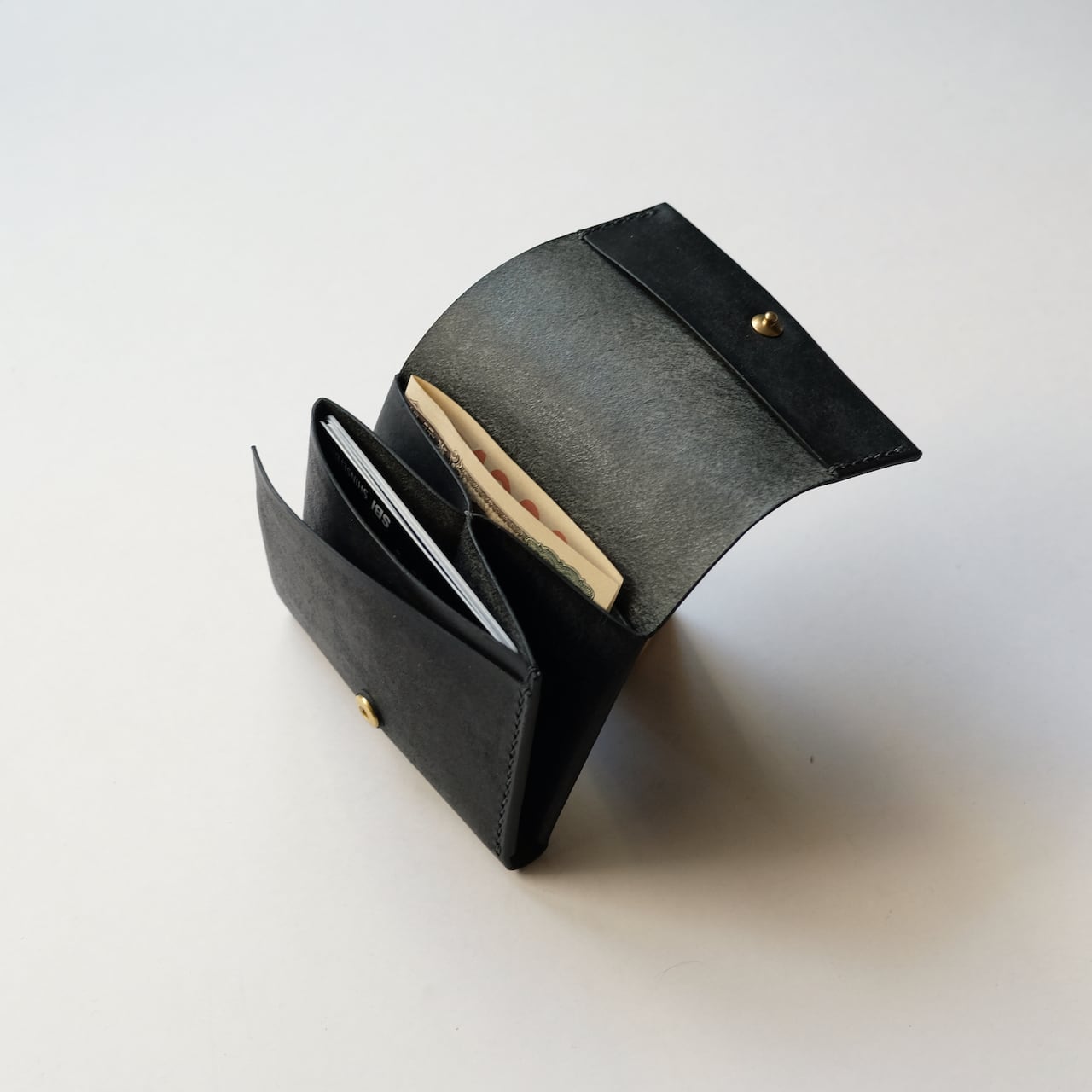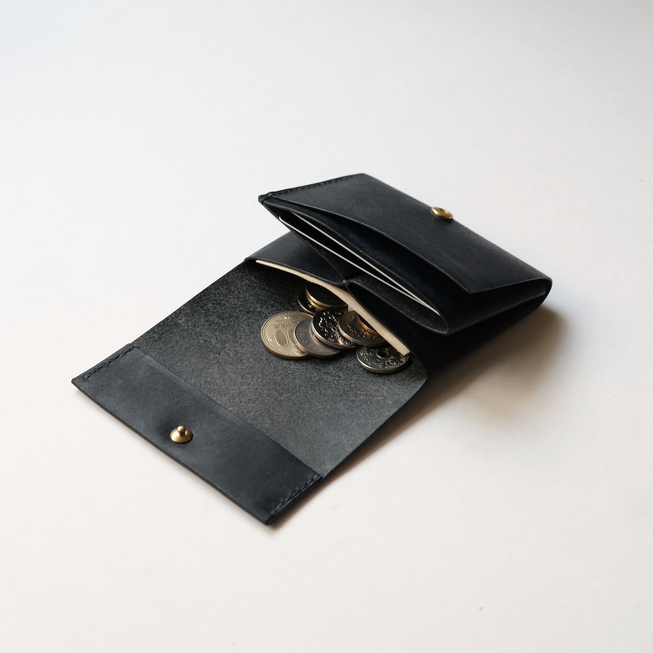 一枚の革を折り返し縫い上げた最小限を持ち歩く小さな財布。