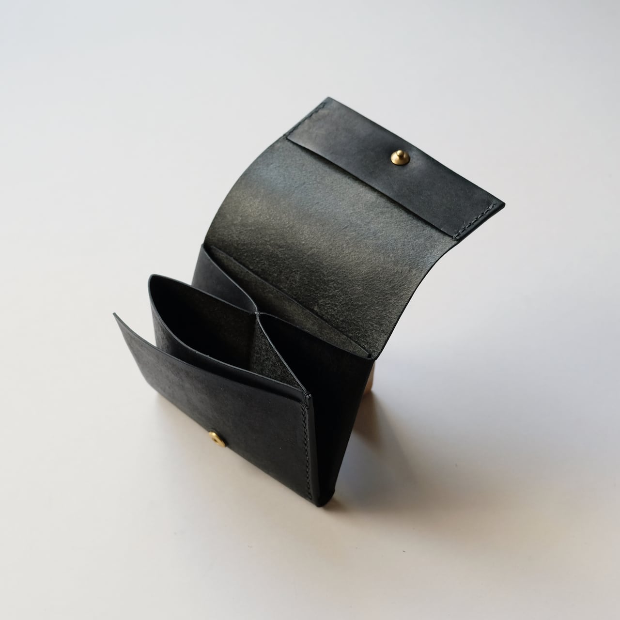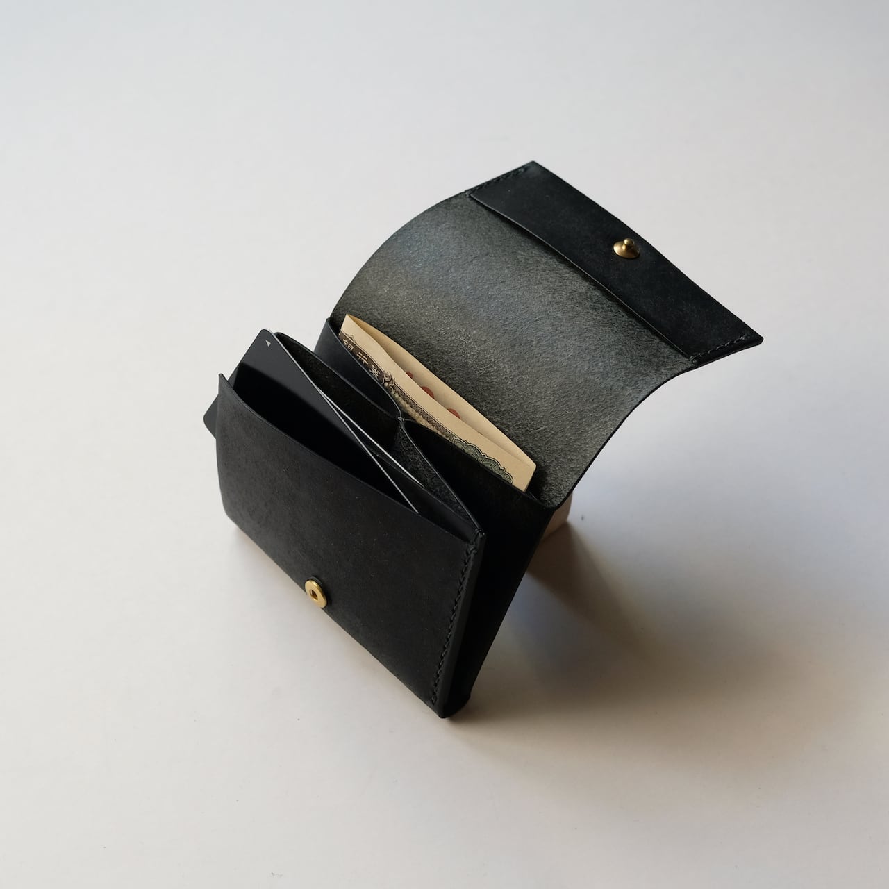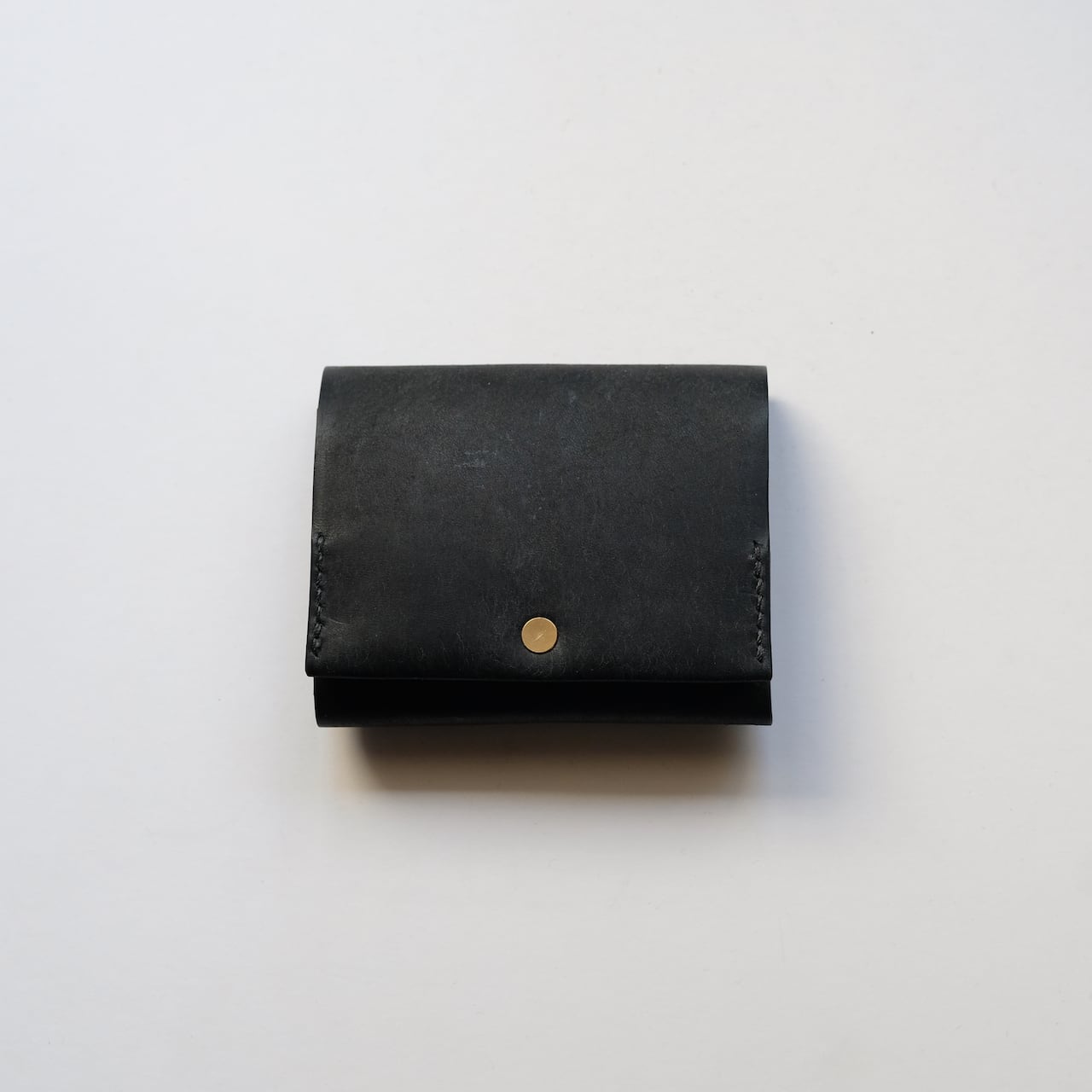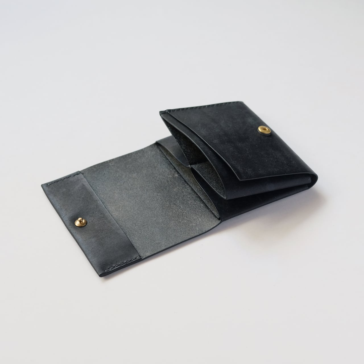 一枚の革を折り返し縫い上げた最小限を持ち歩く小さな財布。