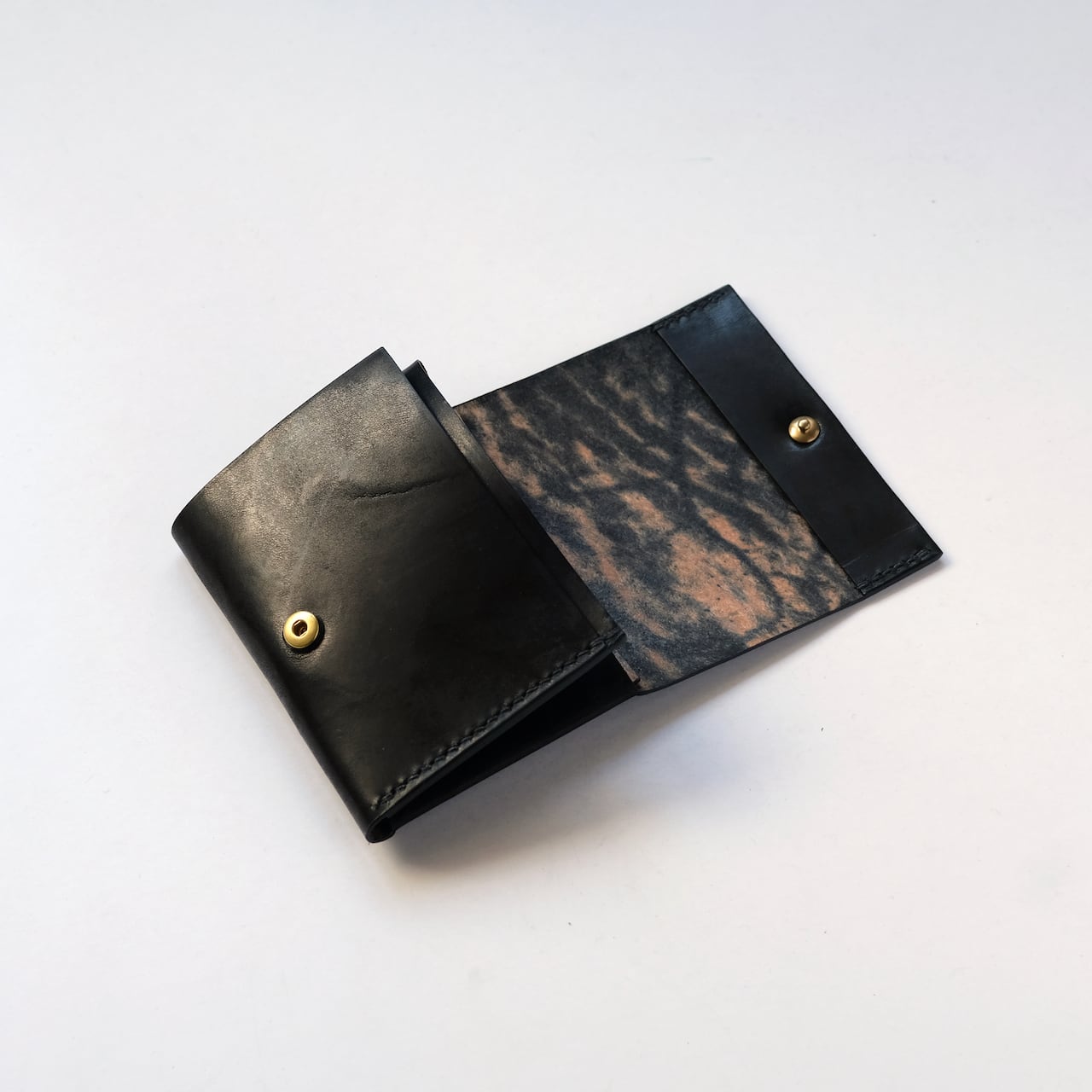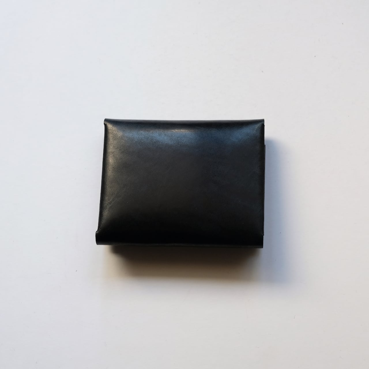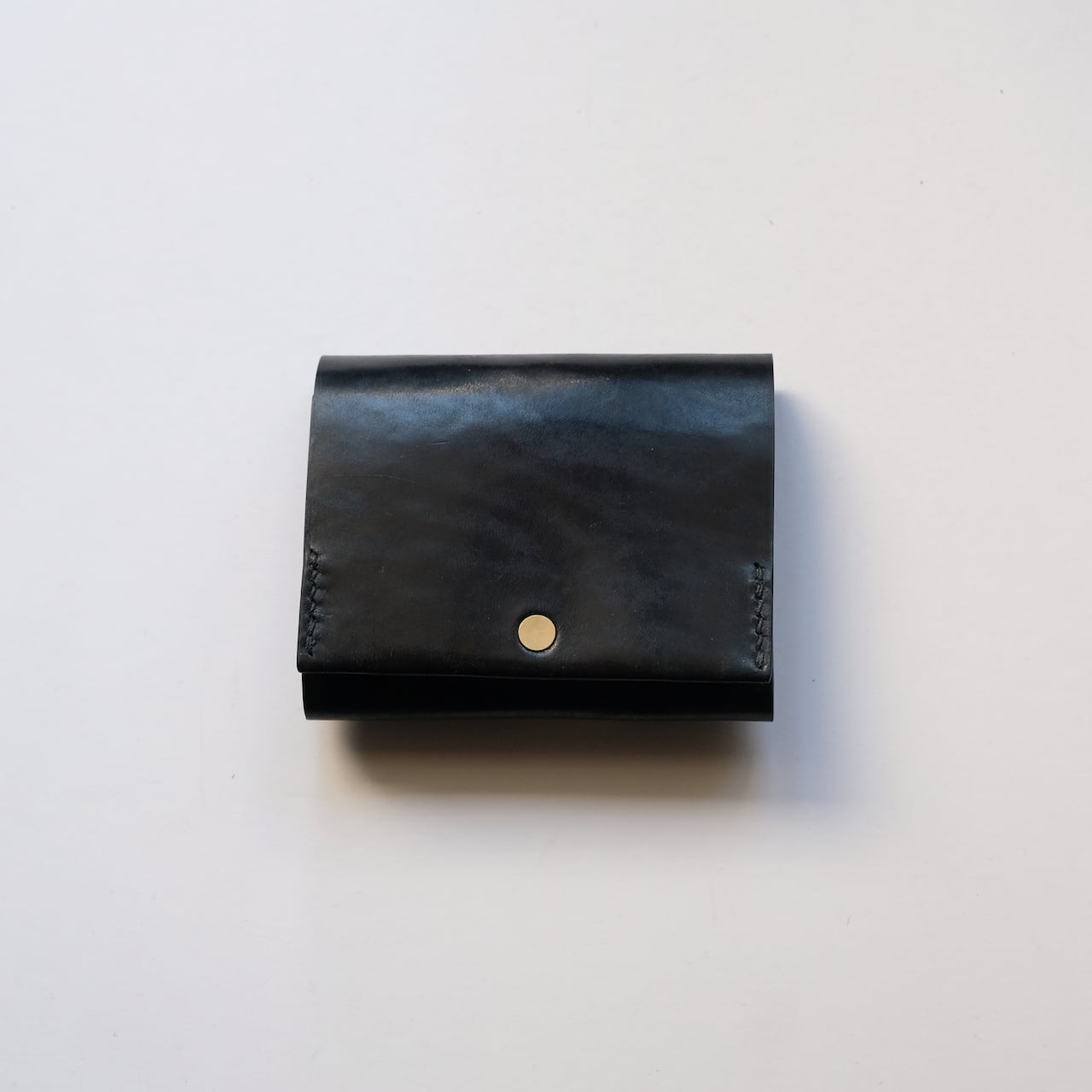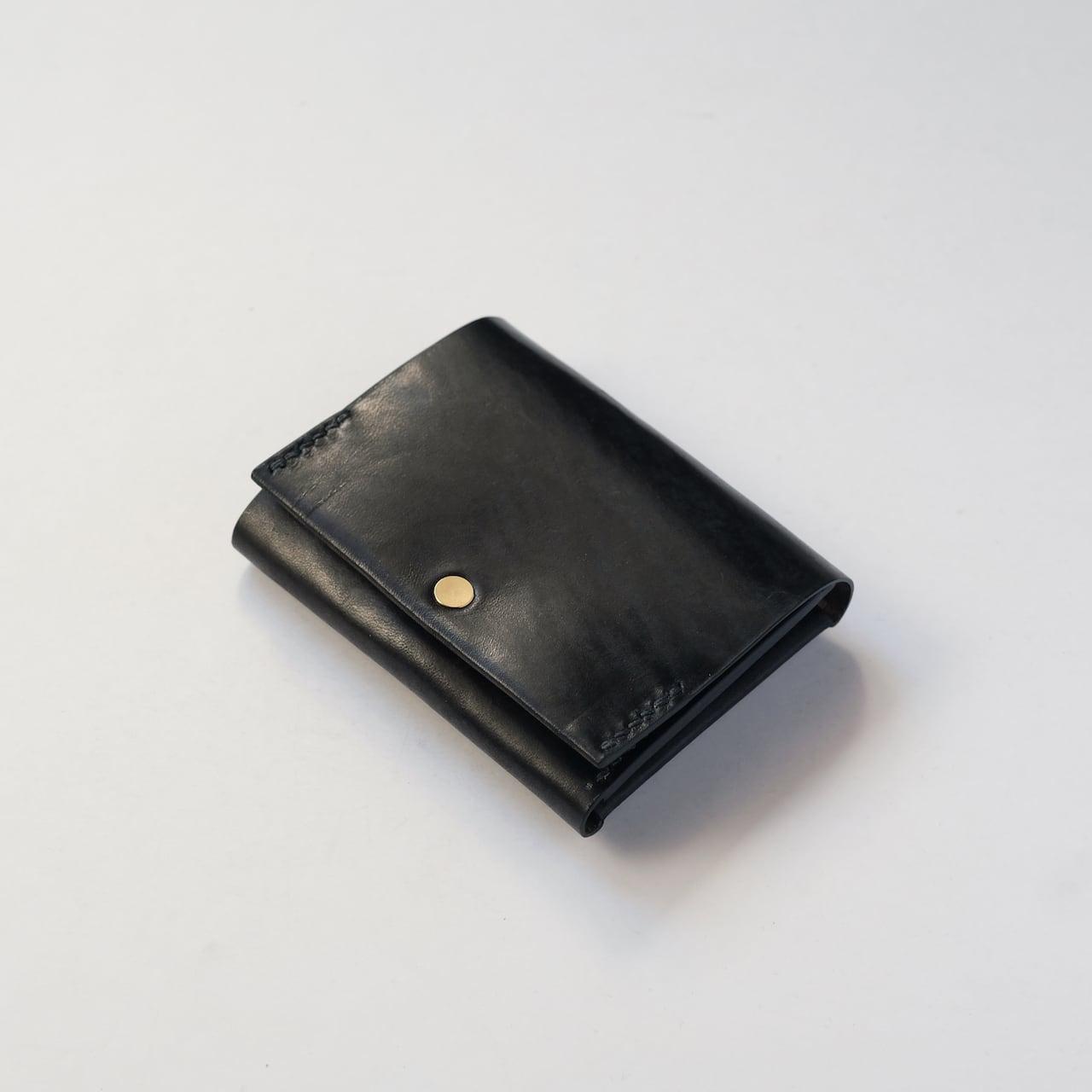 一枚の革を折り返し縫い上げた最小限を持ち歩く小さな財布。
