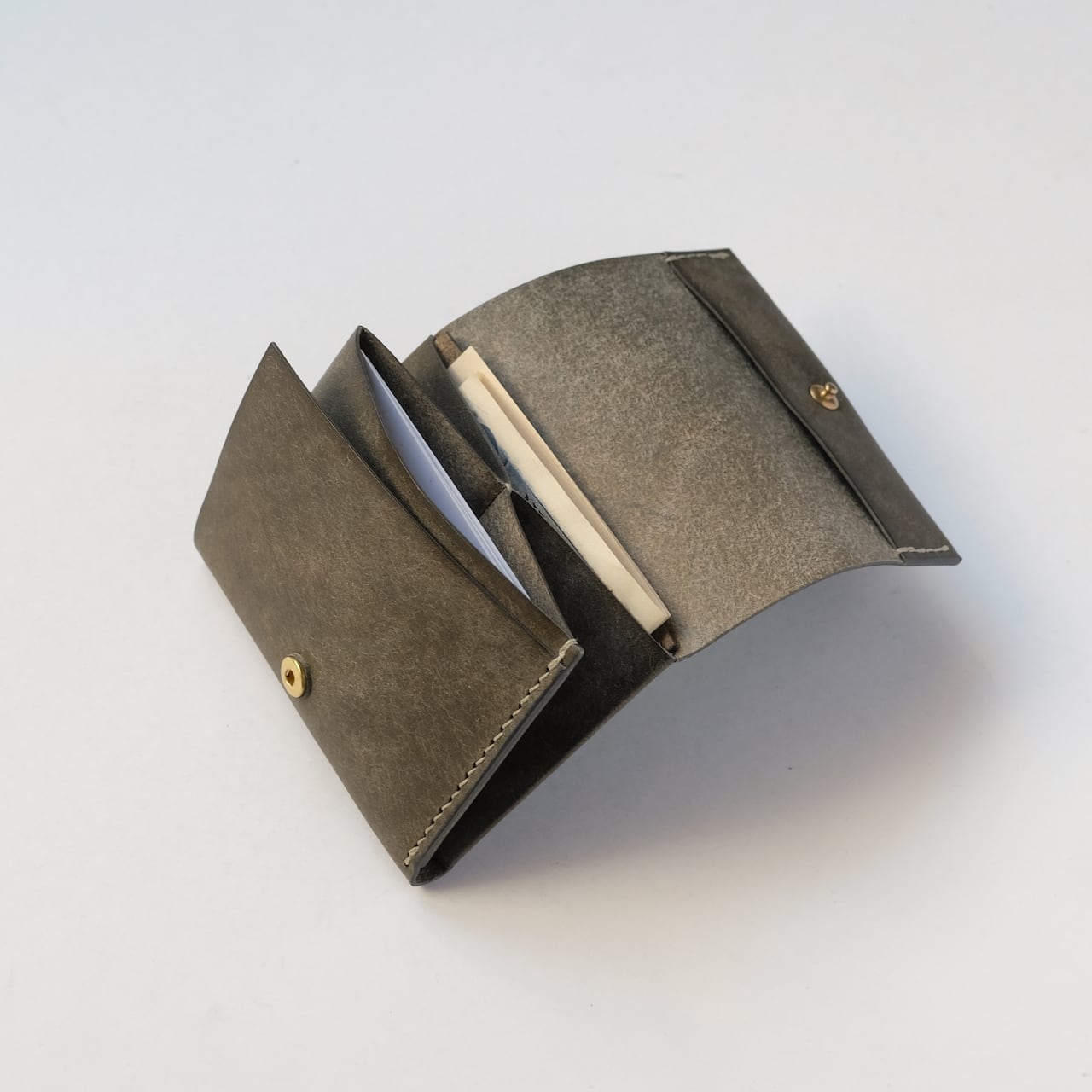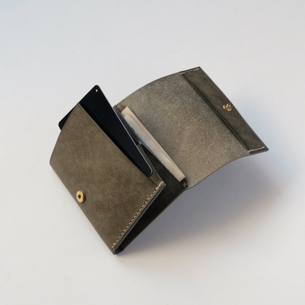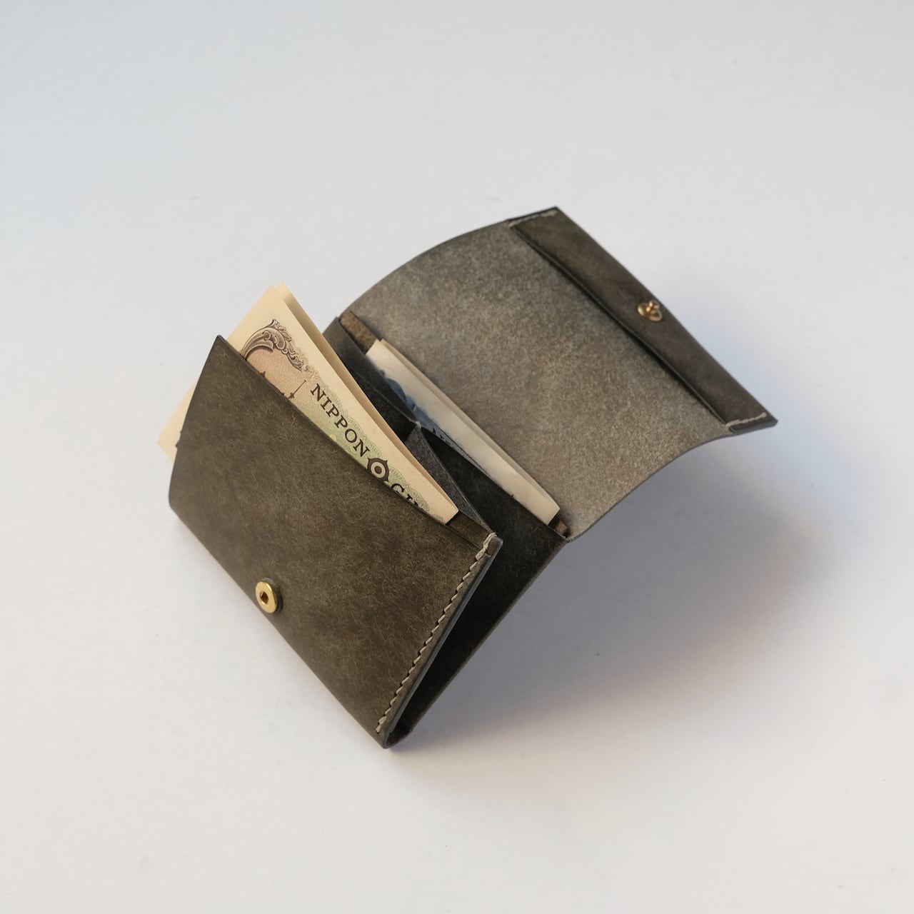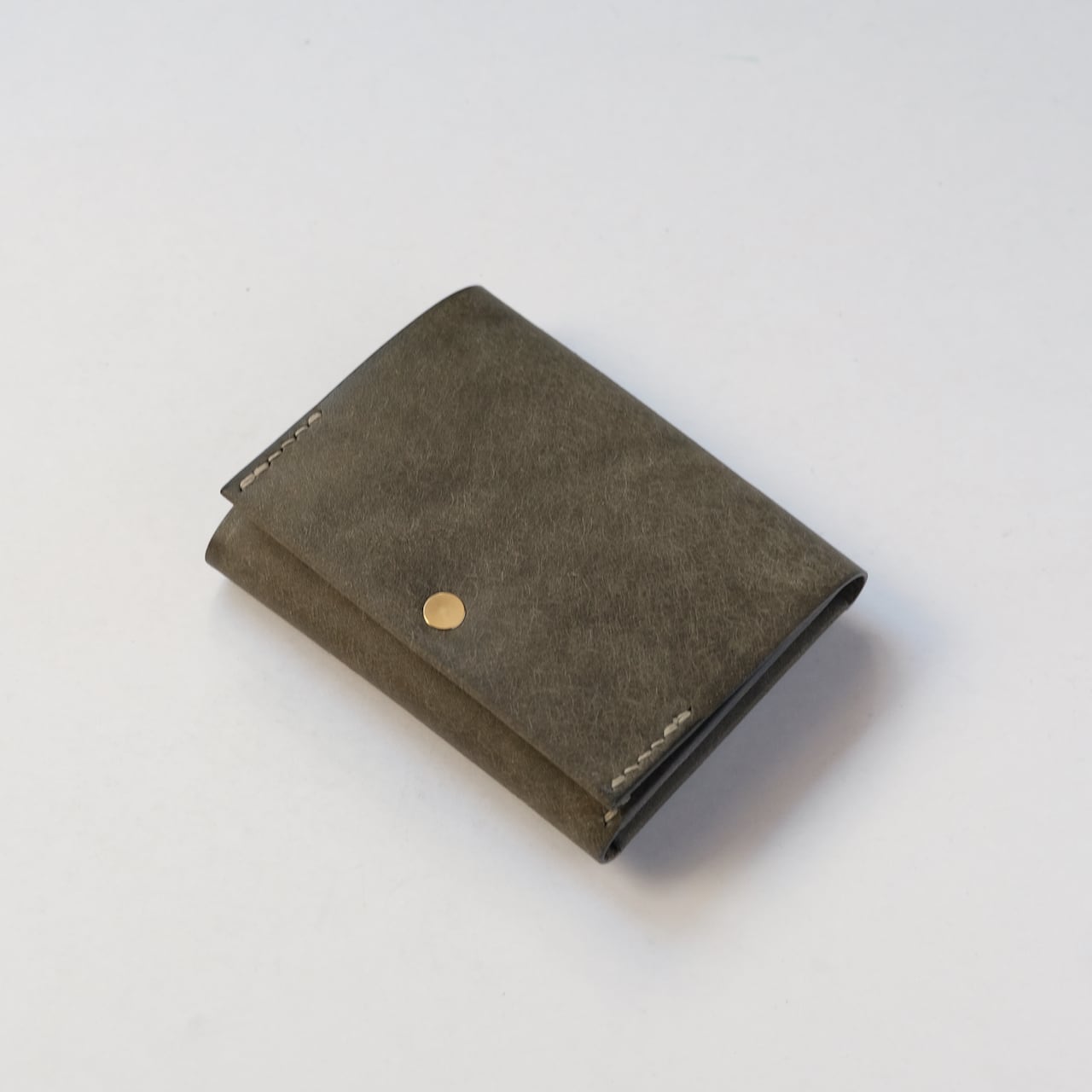 一枚の革を折り返し縫い上げた最小限を持ち歩く小さな財布。