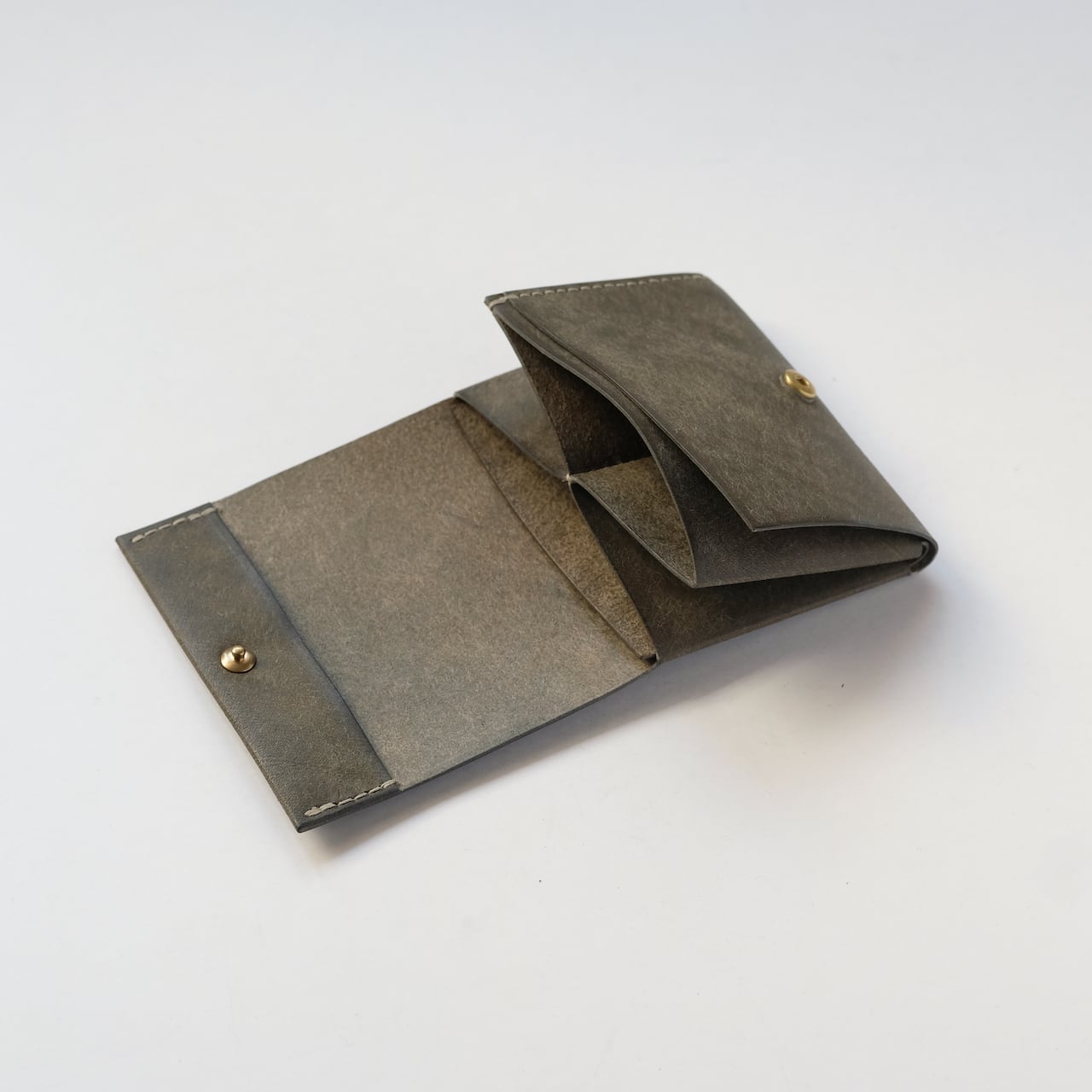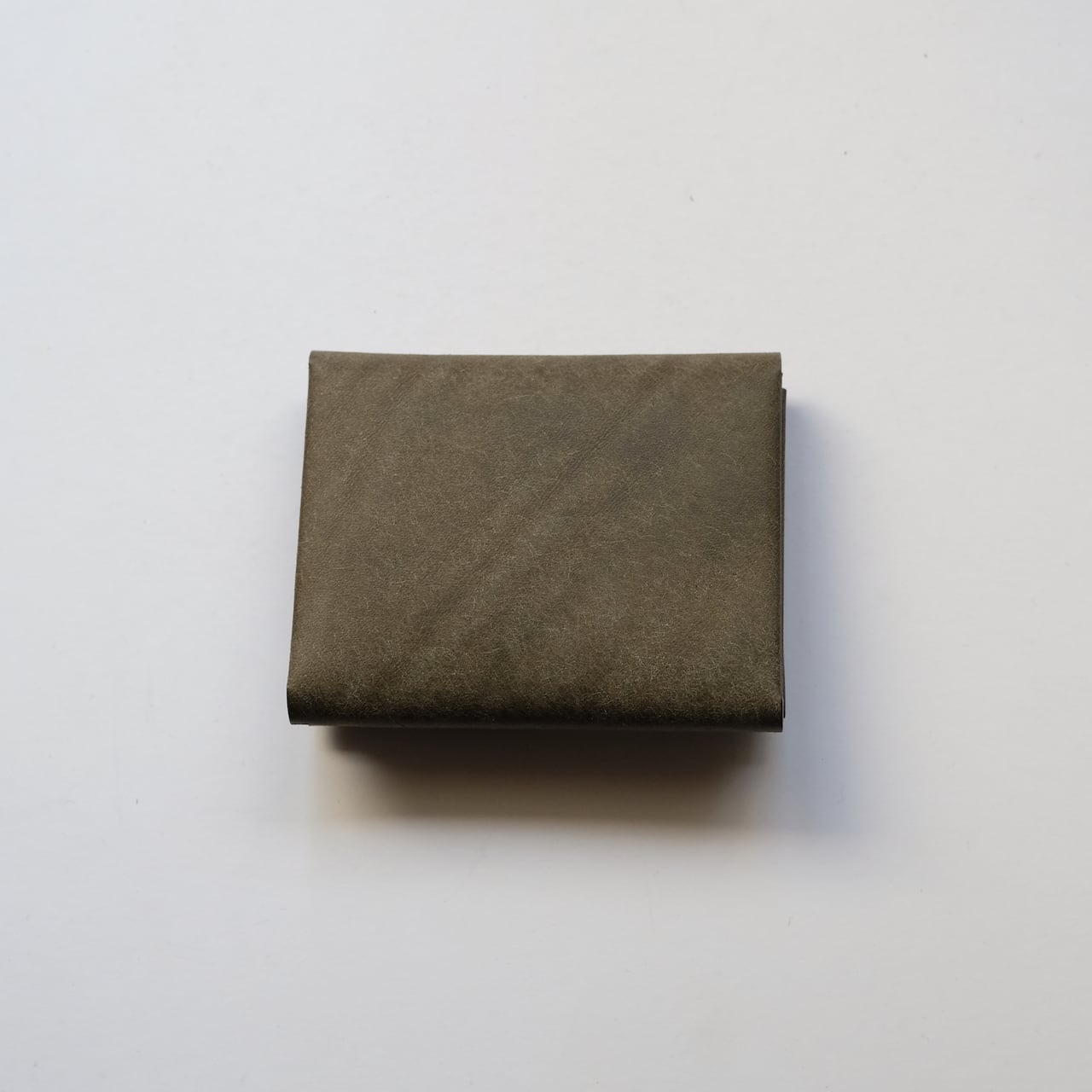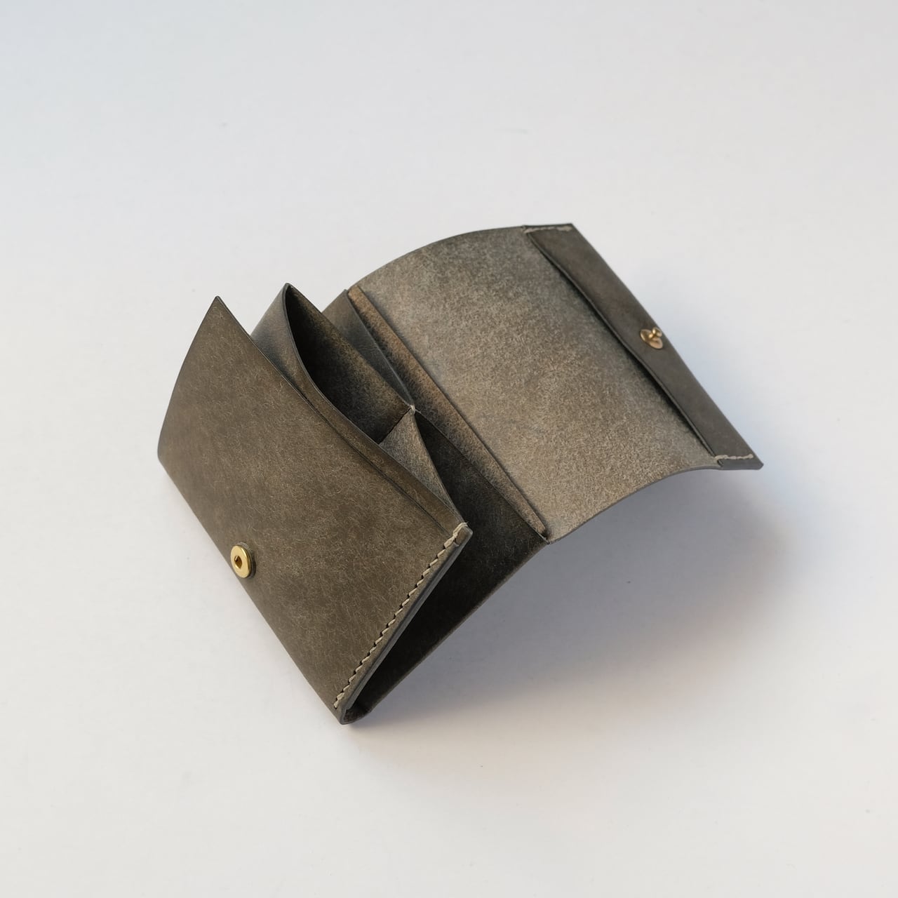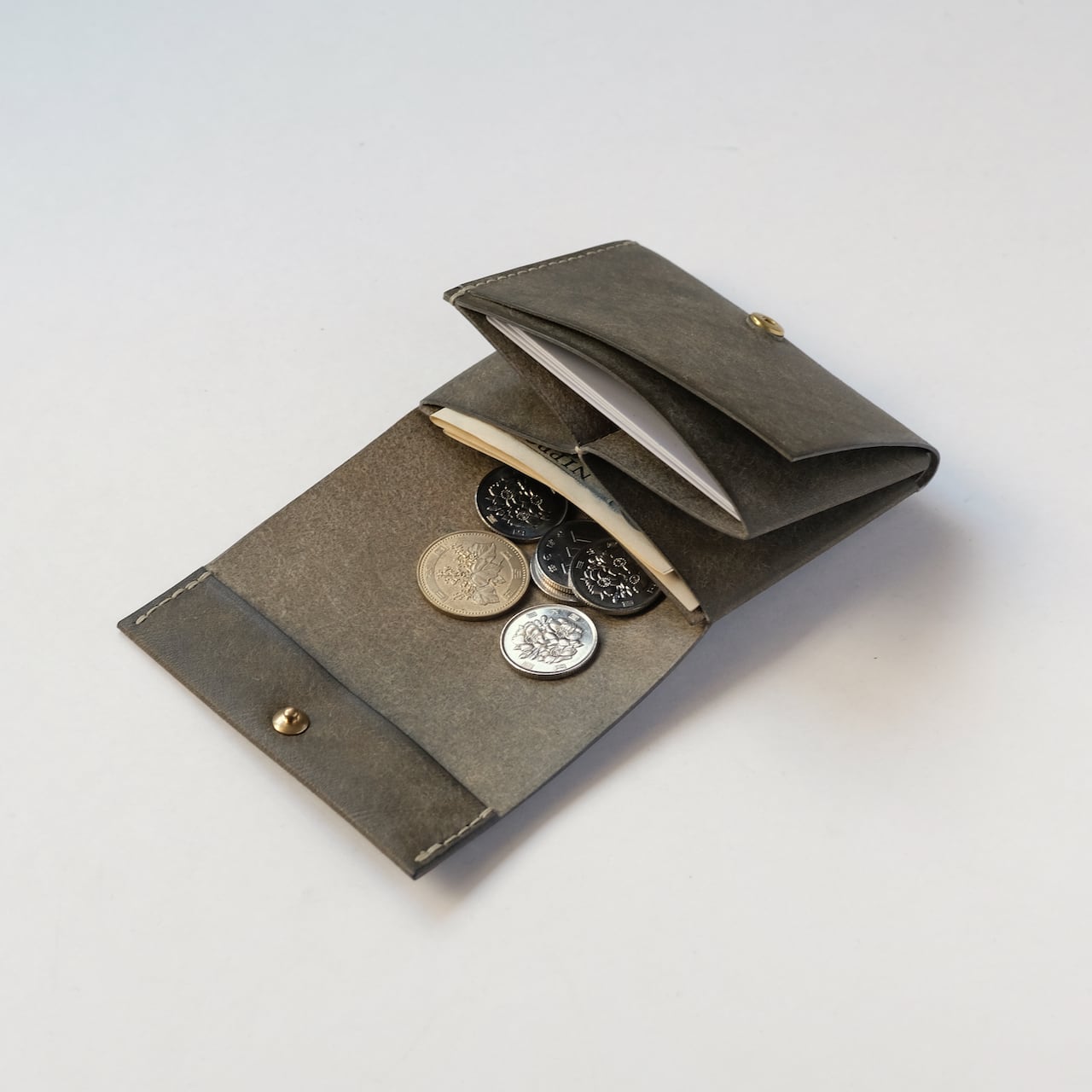 一枚の革を折り返し縫い上げた最小限を持ち歩く小さな財布。