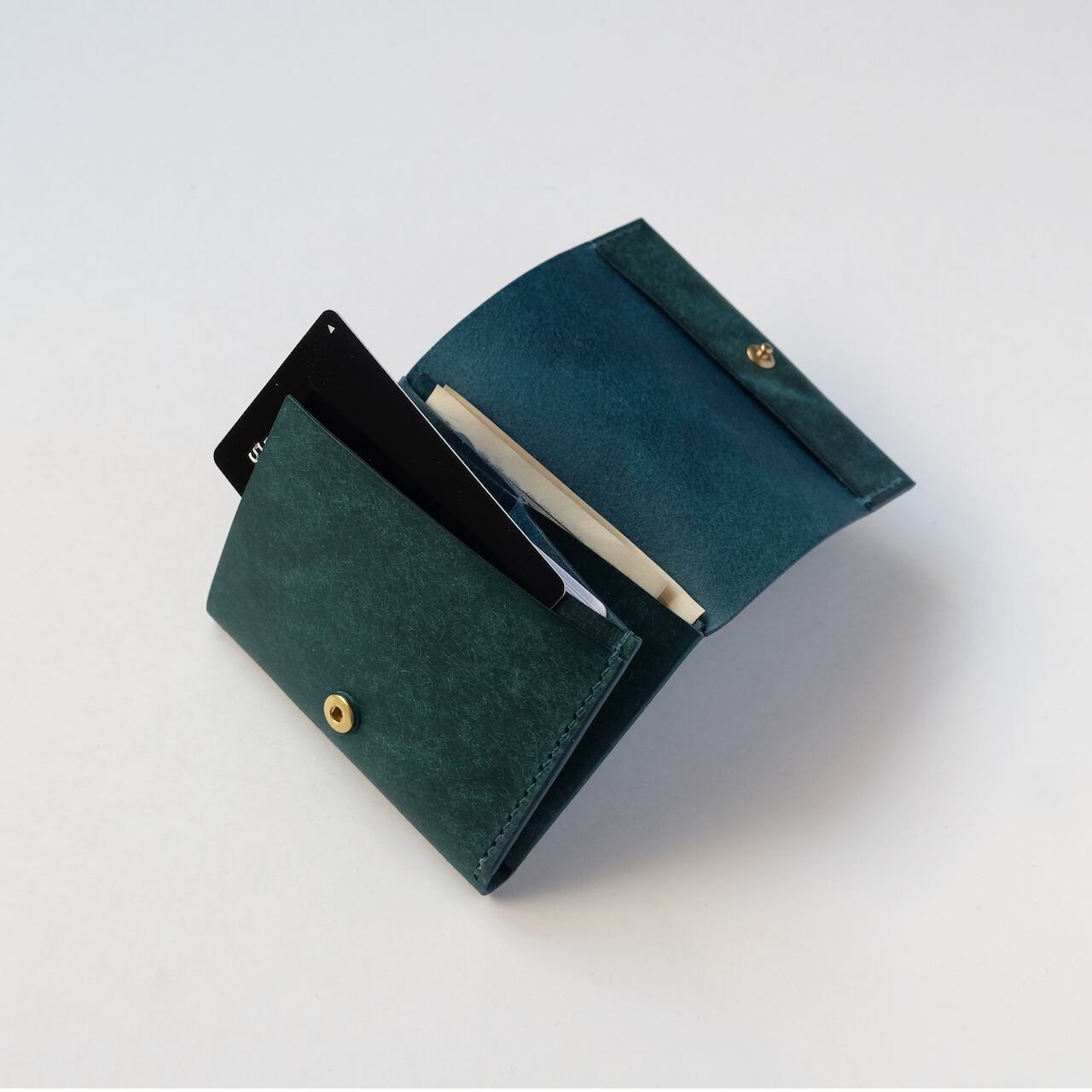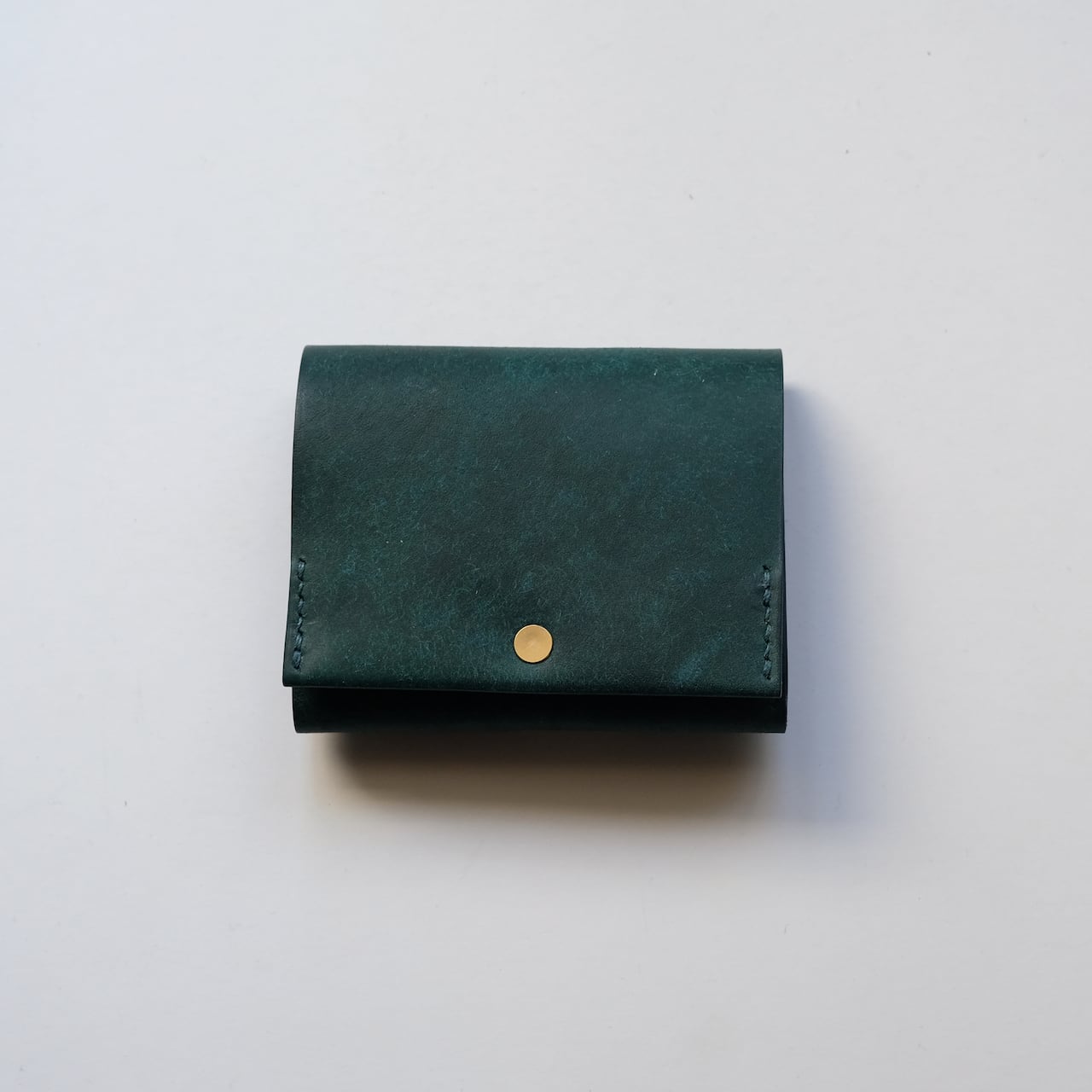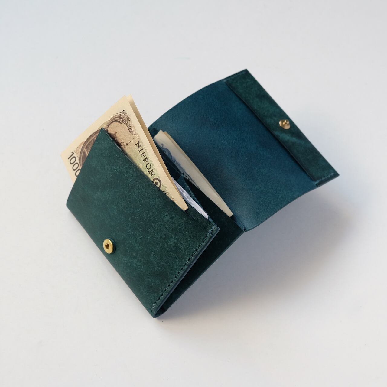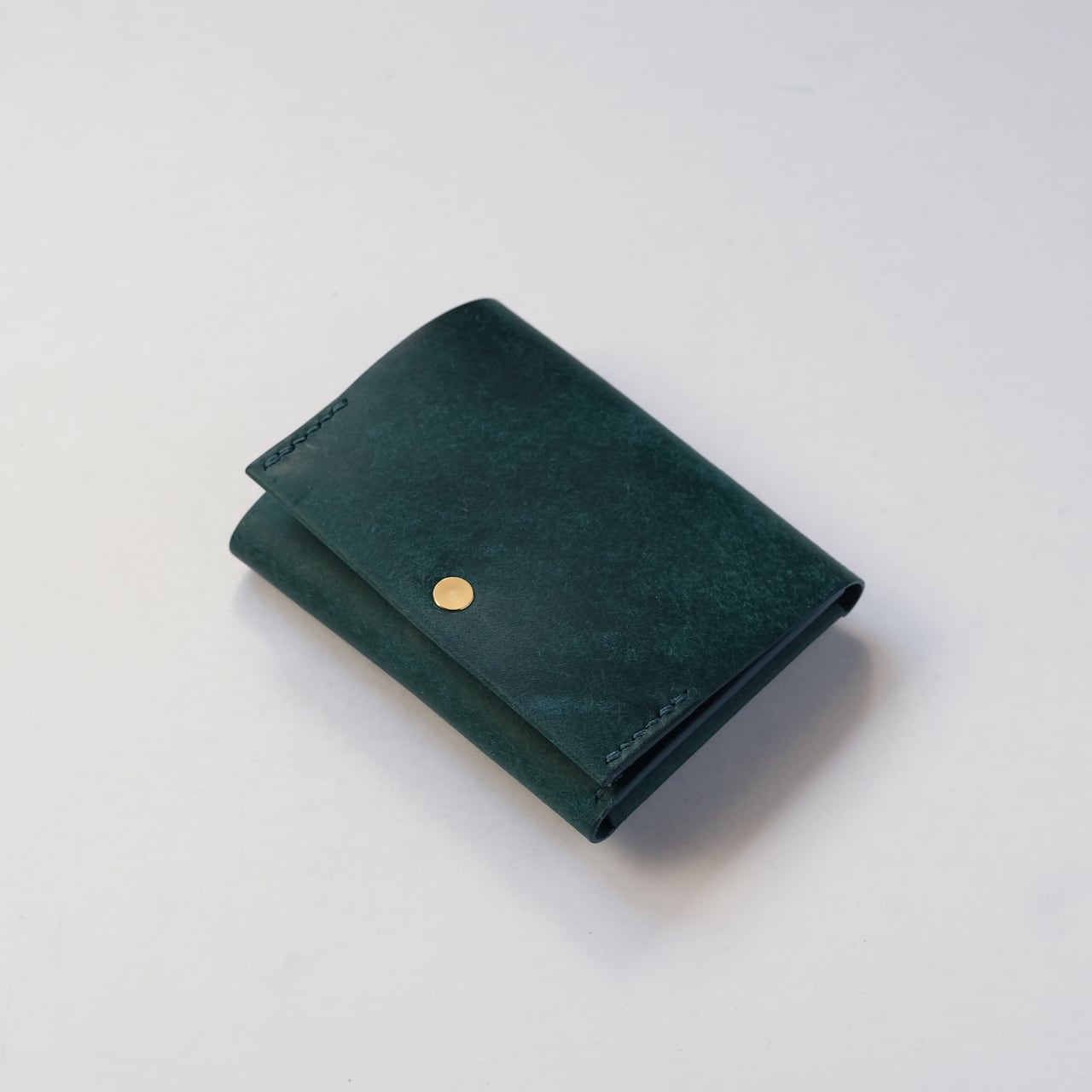 一枚の革を折り返し縫い上げた最小限を持ち歩く小さな財布。