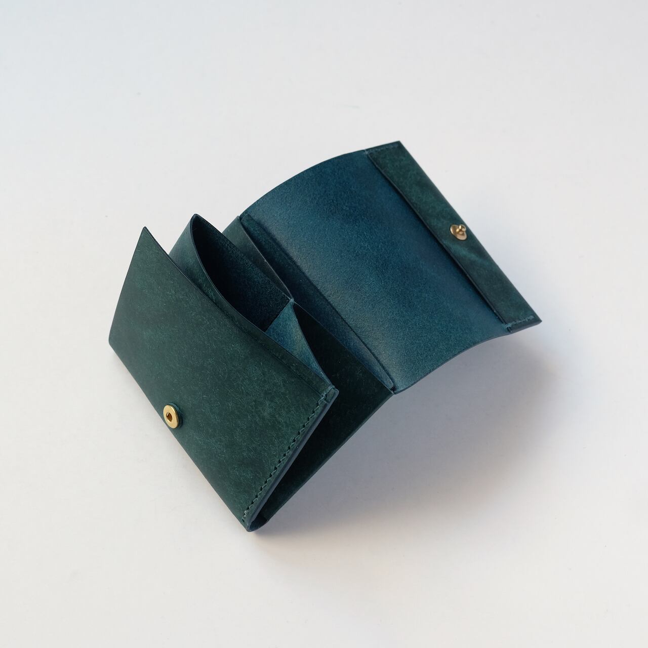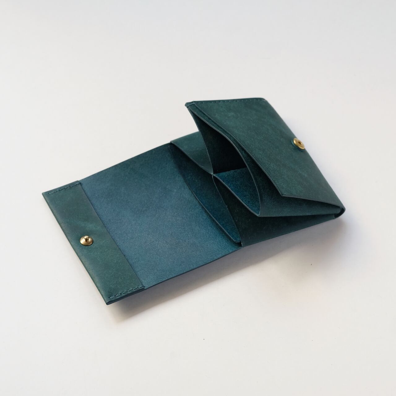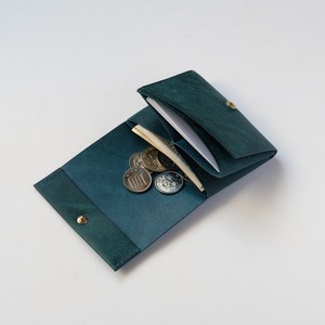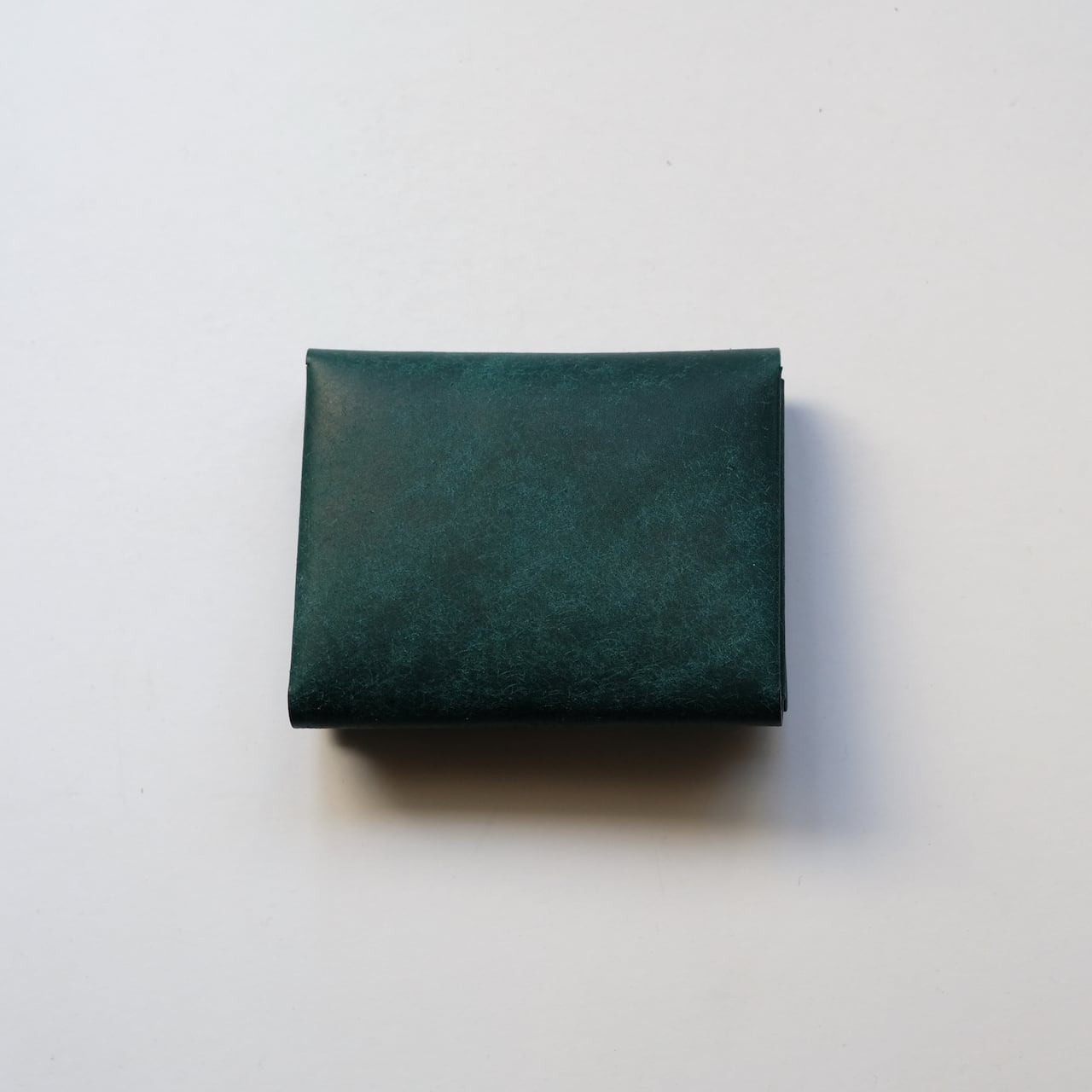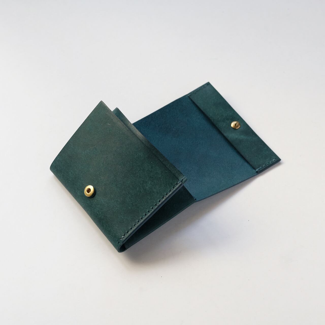 一枚の革を折り返し縫い上げた最小限を持ち歩く小さな財布。