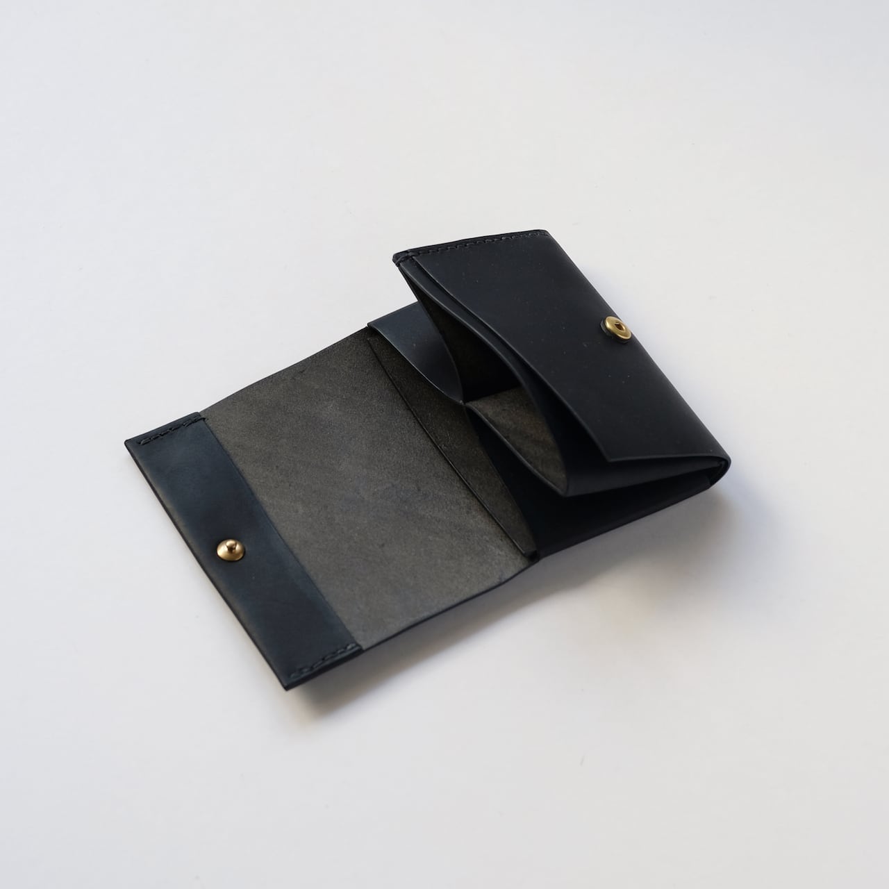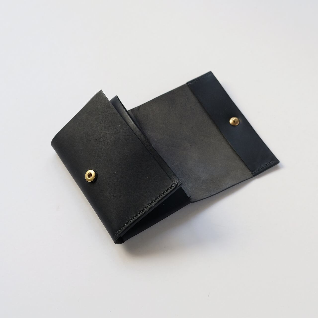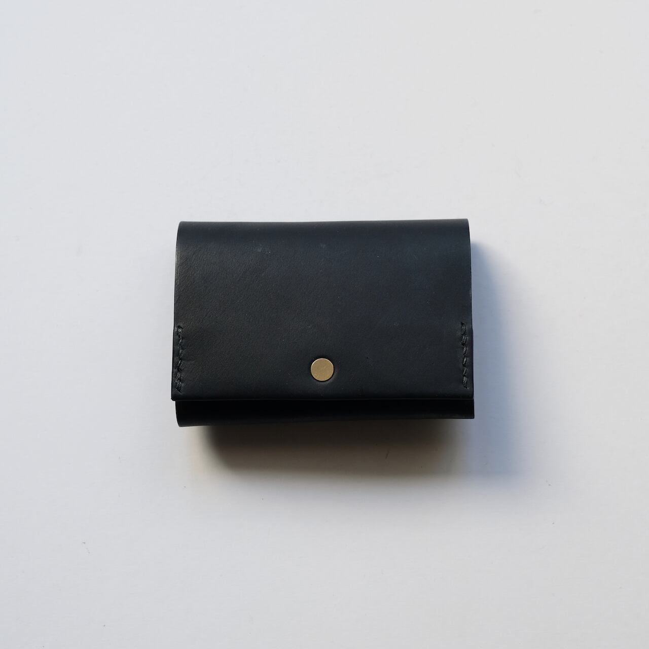 一枚の革を折り返し縫い上げた最小限を持ち歩く小さな財布。