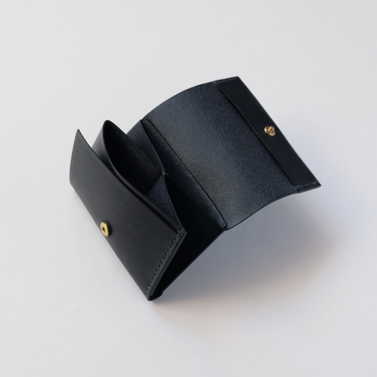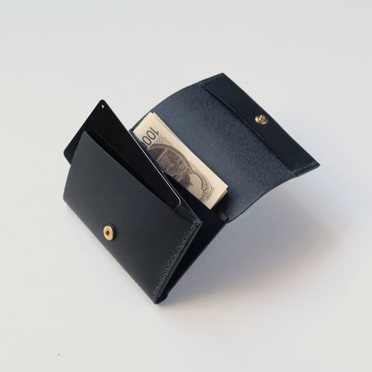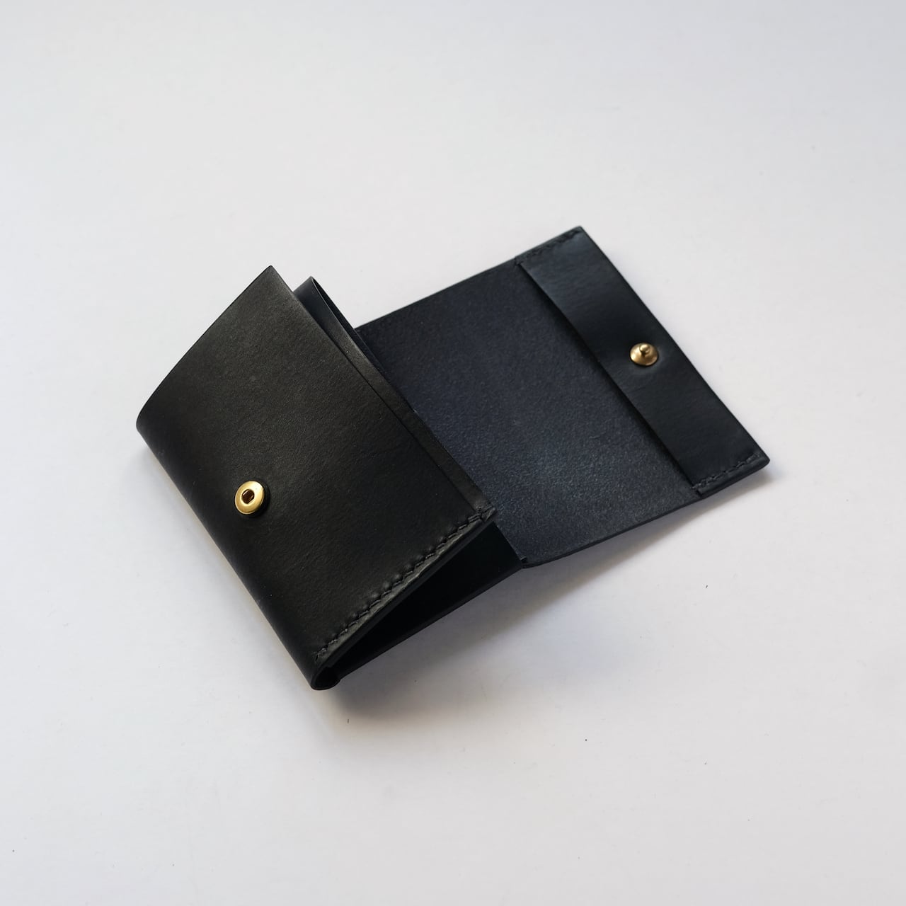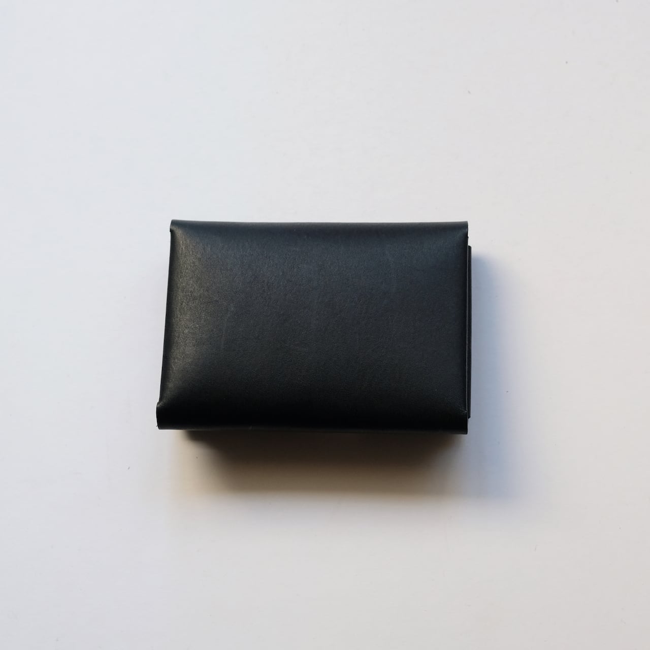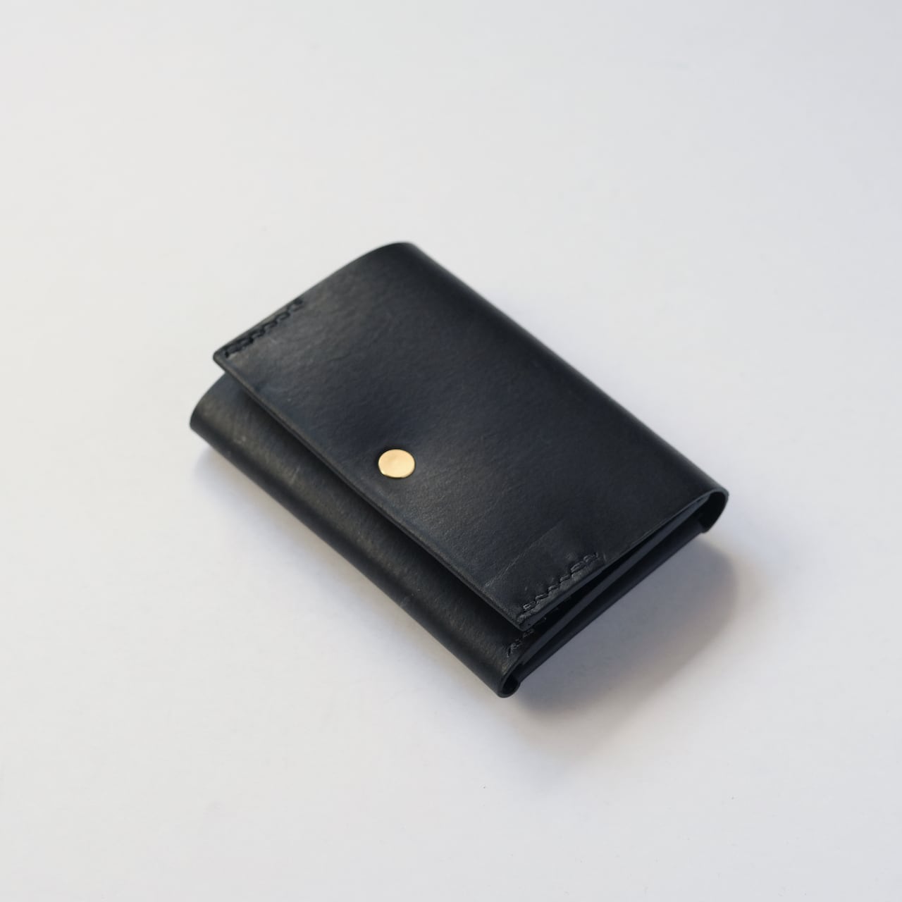 一枚の革を折り返し縫い上げた最小限を持ち歩く小さな財布。
