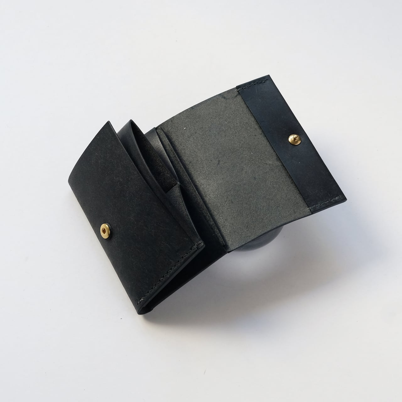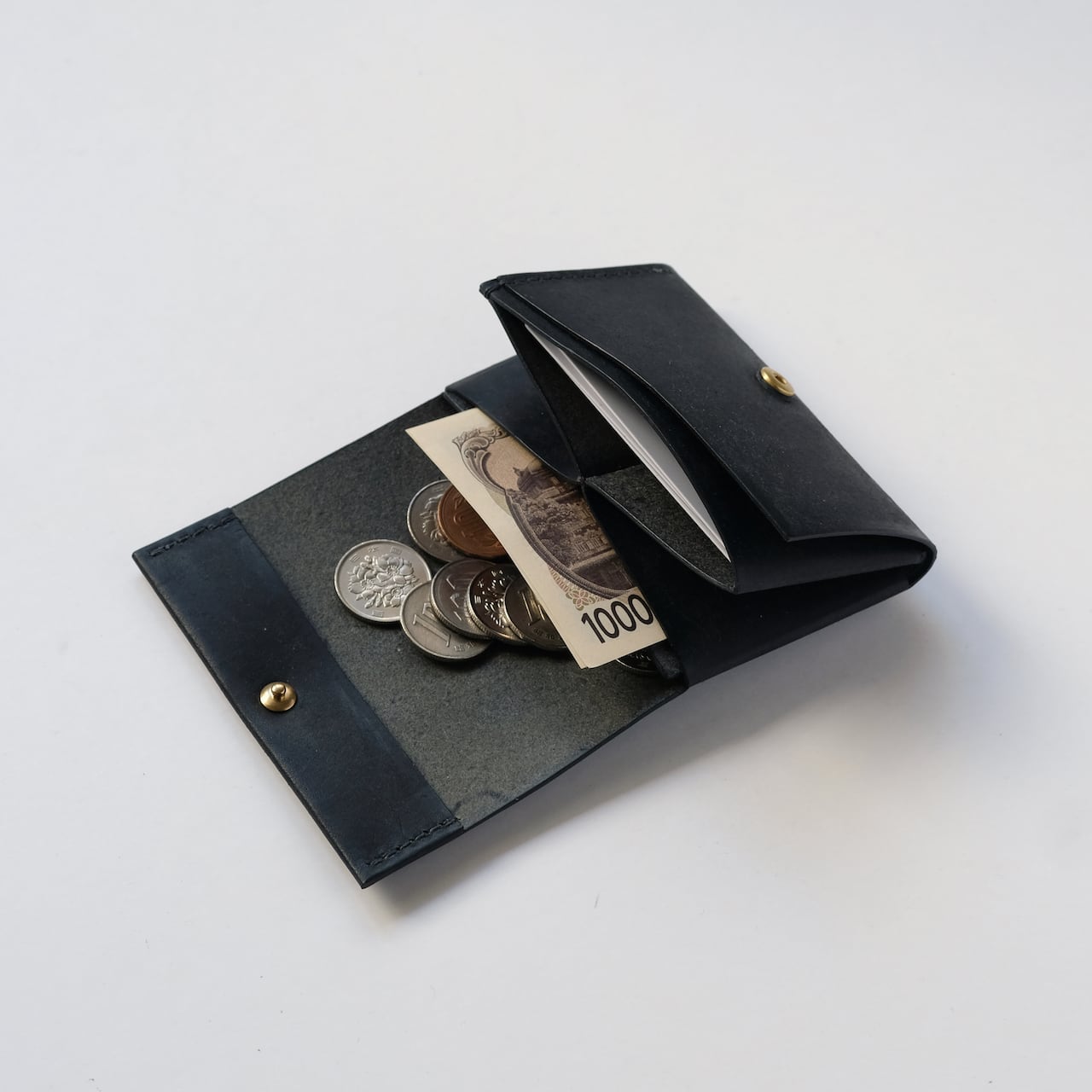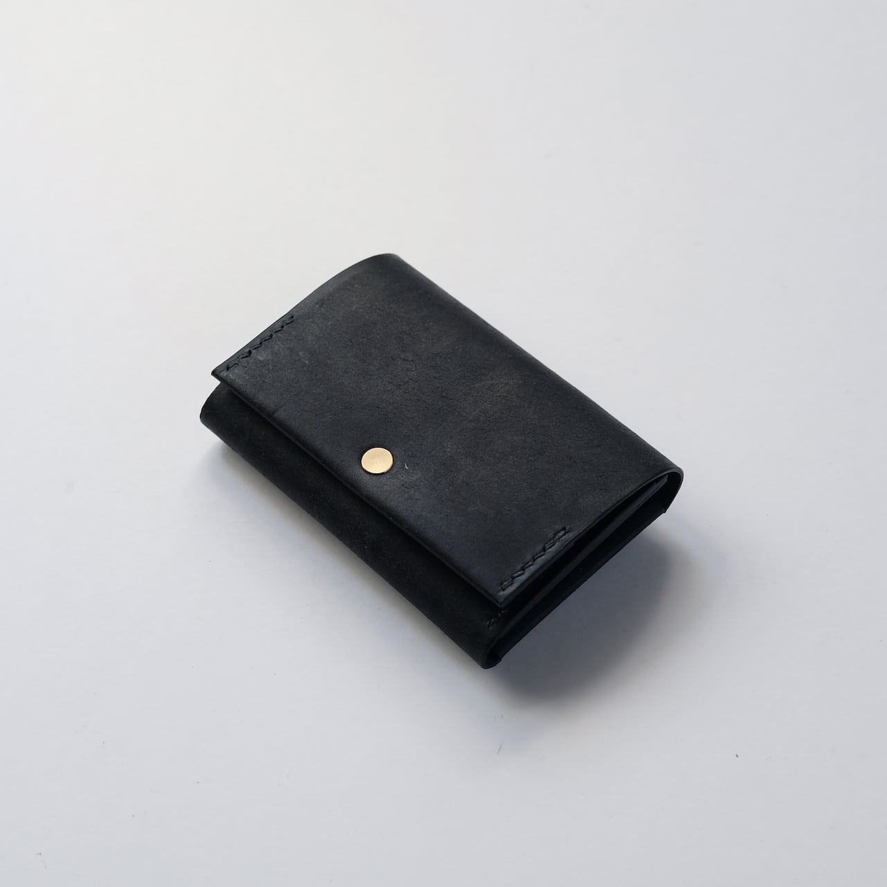 一枚の革を折り返し縫い上げた最小限を持ち歩く小さな財布。