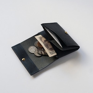 手のひらに収まるサイズの中に、小銭、カード、紙幣を収納でき、多くを持たず最低限必要なものだけ持ちこれひとつで身軽に出かけていただけるようより小さく設計されたコンパクトなデザインの財布です。