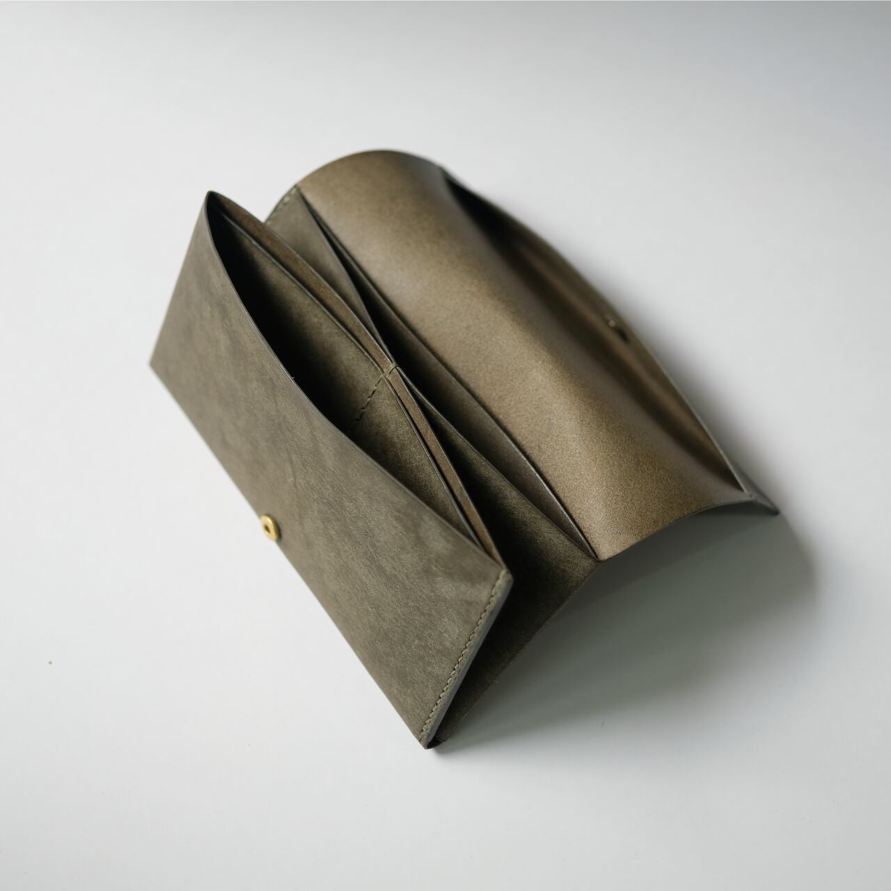 最小限の革と縫製で製作したデザインで非常に軽く薄い長財布。